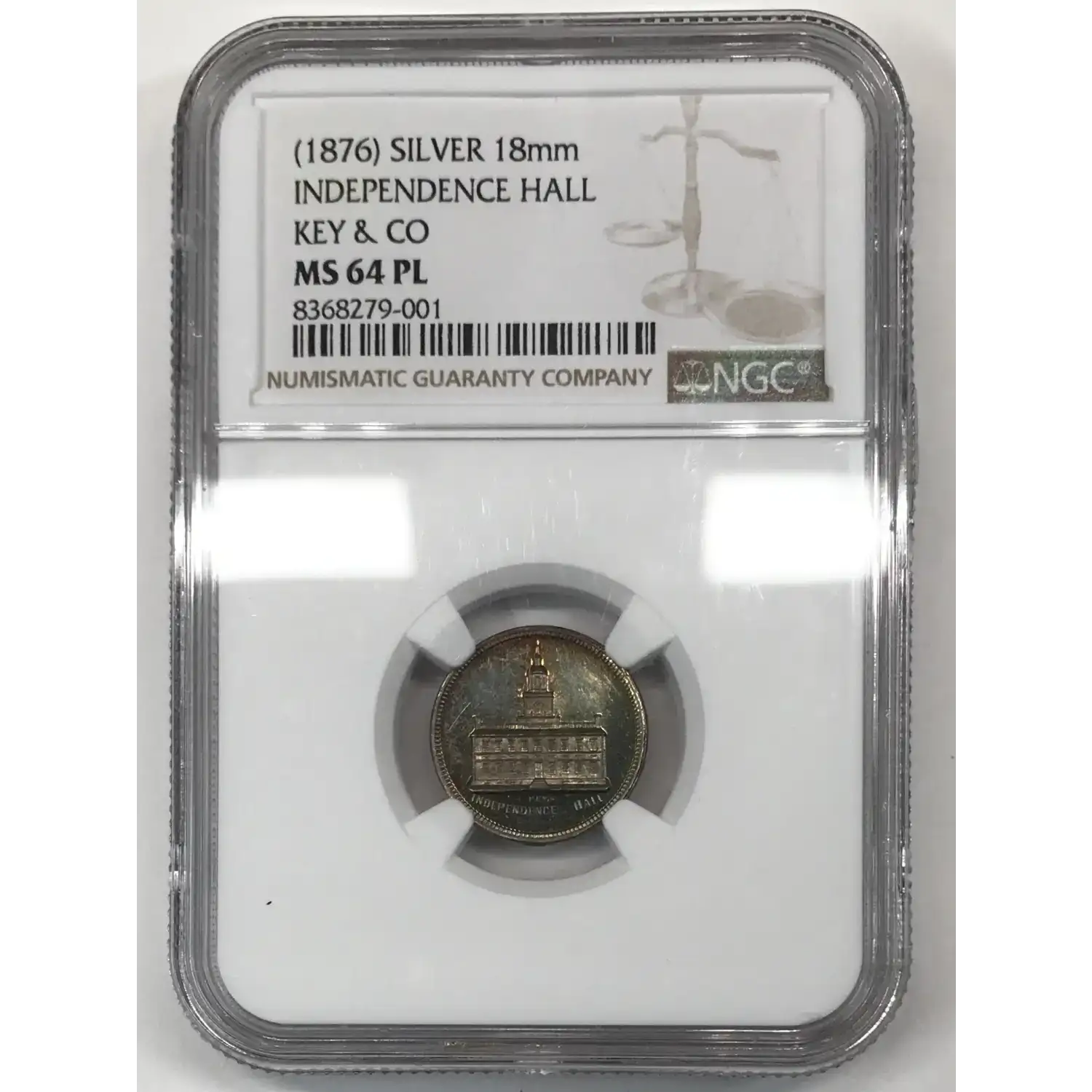1876 Medal NGC MS-64 PL INDEPENDENCE HALL KEY & CO Silver 18mm