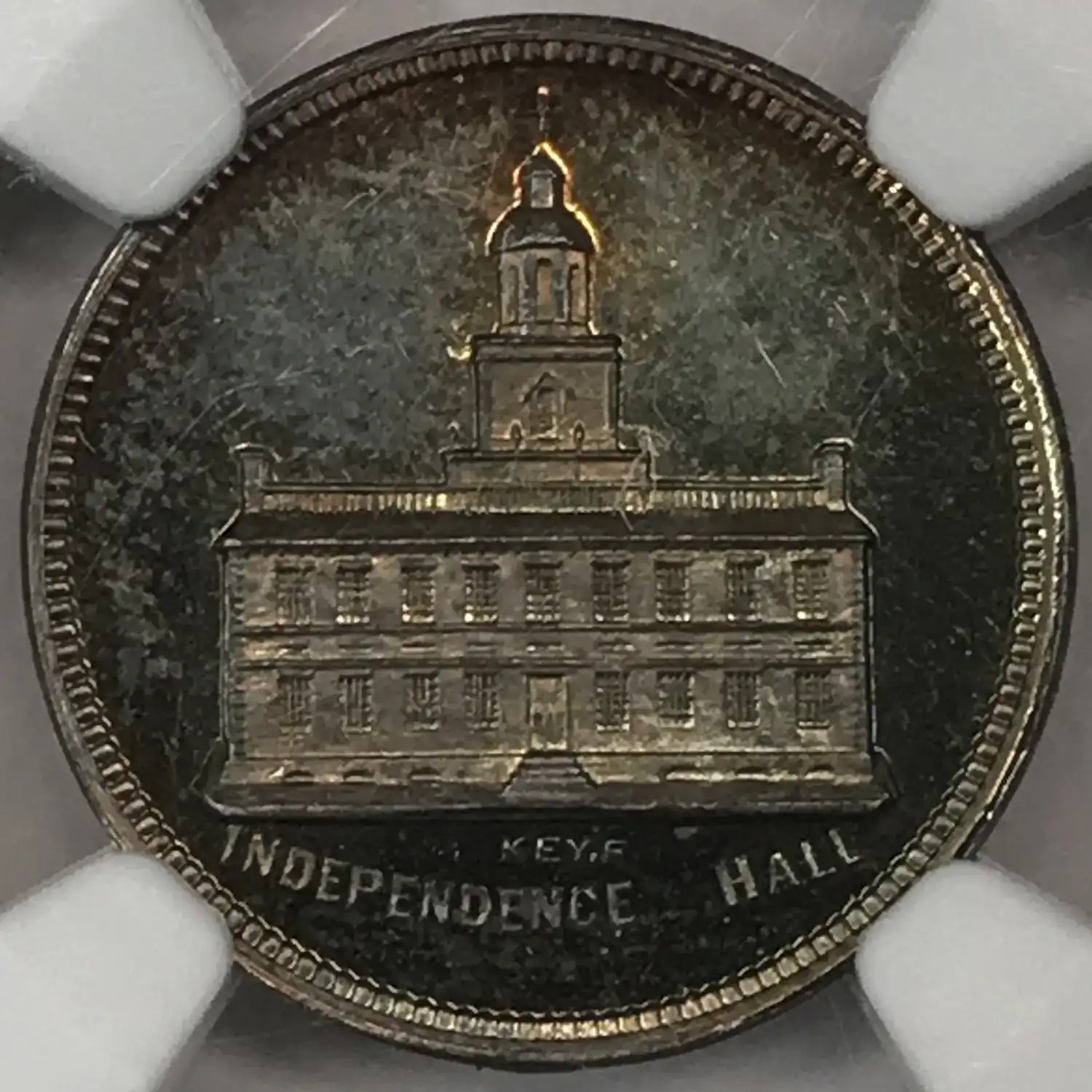 (1876) INDEPENDENCE HALL KEY & CO 18mm Silver Medal / Medalet / Token NGC MS64 PL - Holland-28, Abler-3350
