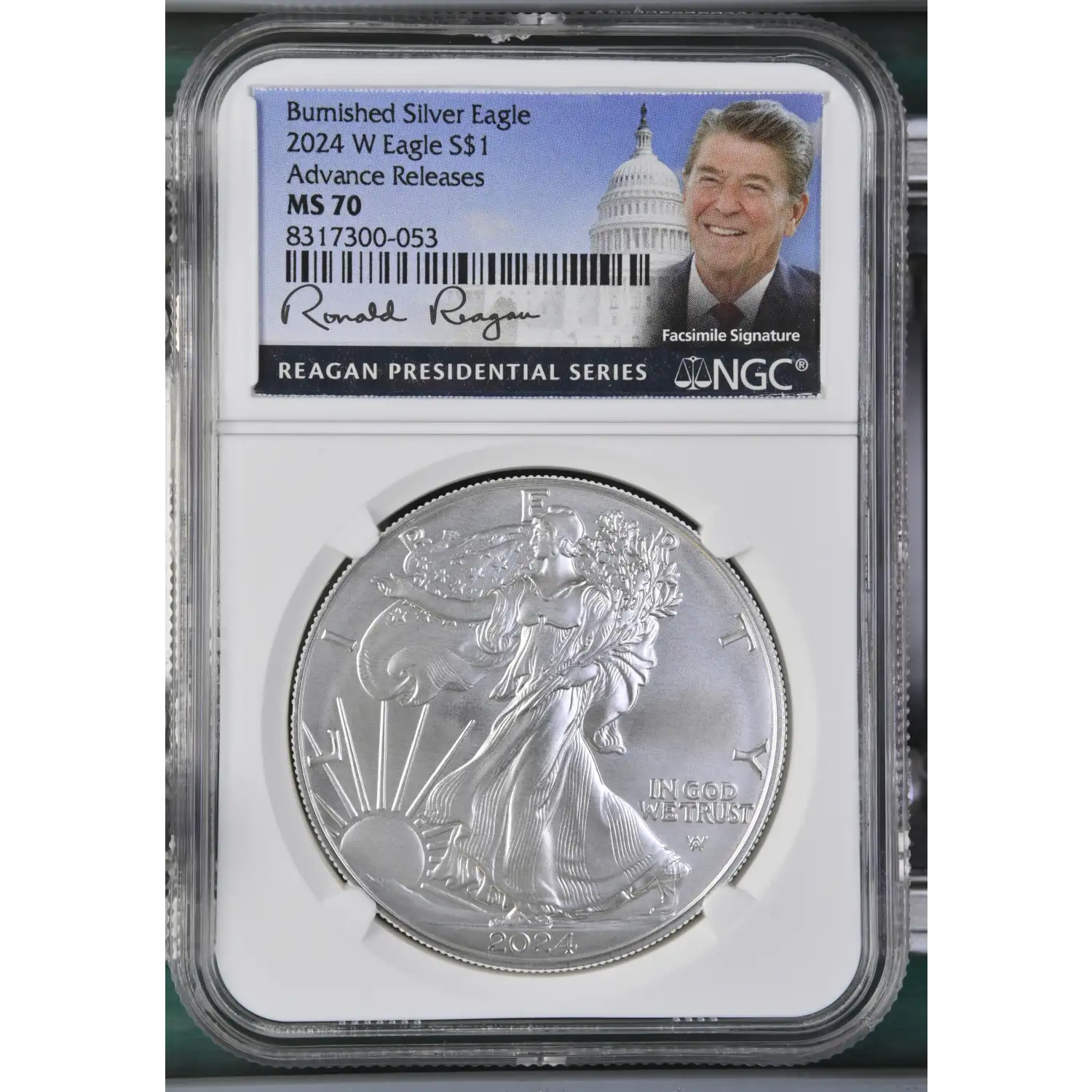 2024-W Silver Eagle NGC MS-70 Burnished Advance Releases Reagan Cabral