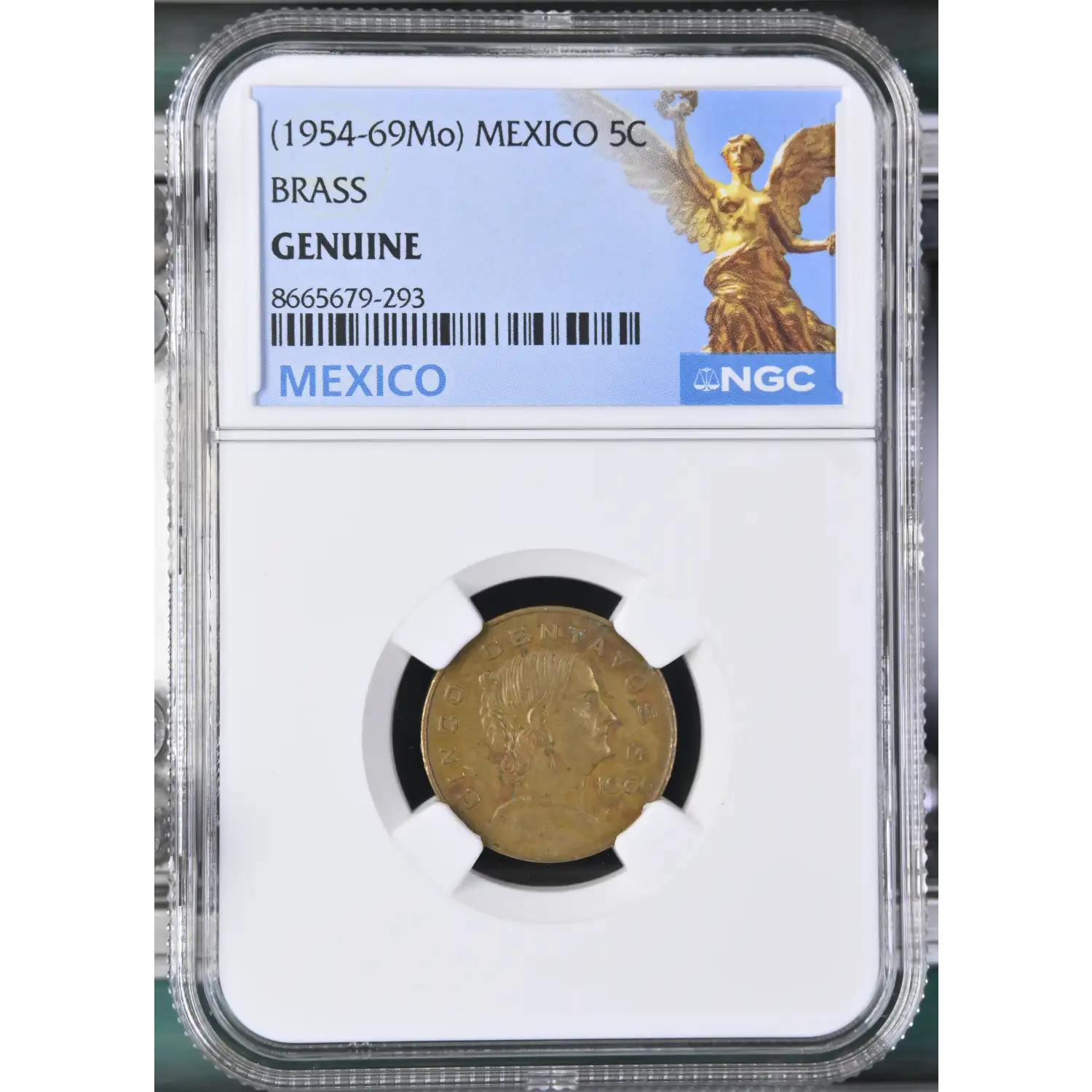 1966-Mo MEXICO Brass 5 CENTAVOS NGC GENUINE (1954-1969) KM-426