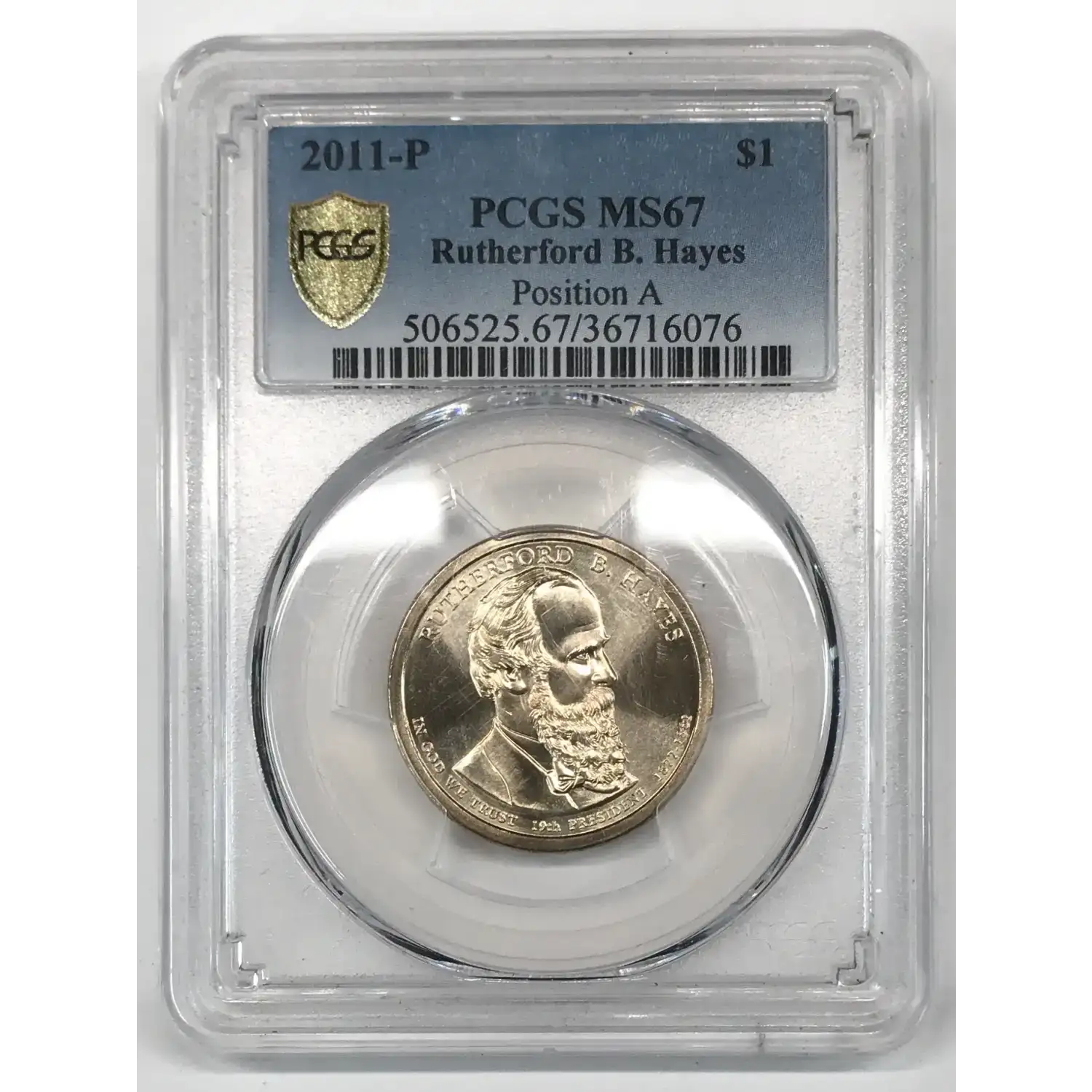 2011 P Rutherford B. Hayes, Position A Presidential Dollar PCGS MS-67 - Gold Shield w TrueView Photo