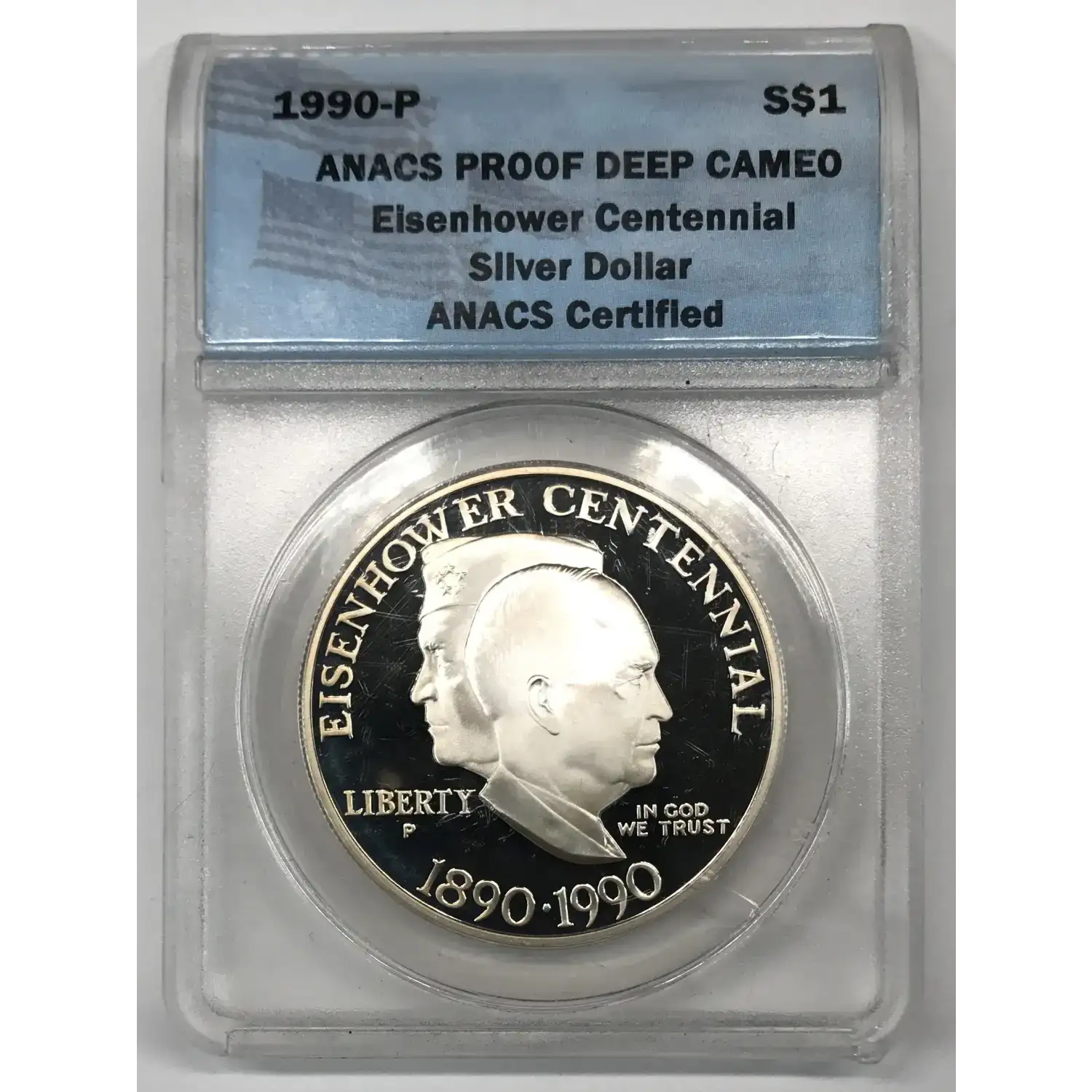 1990 P Proof Eisenhower Centennial Commemorative Silver Dollar ANACS Certified DEEP CAMEO