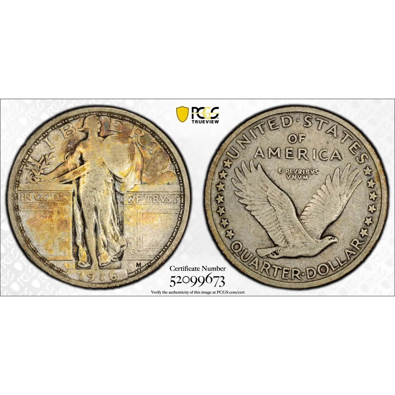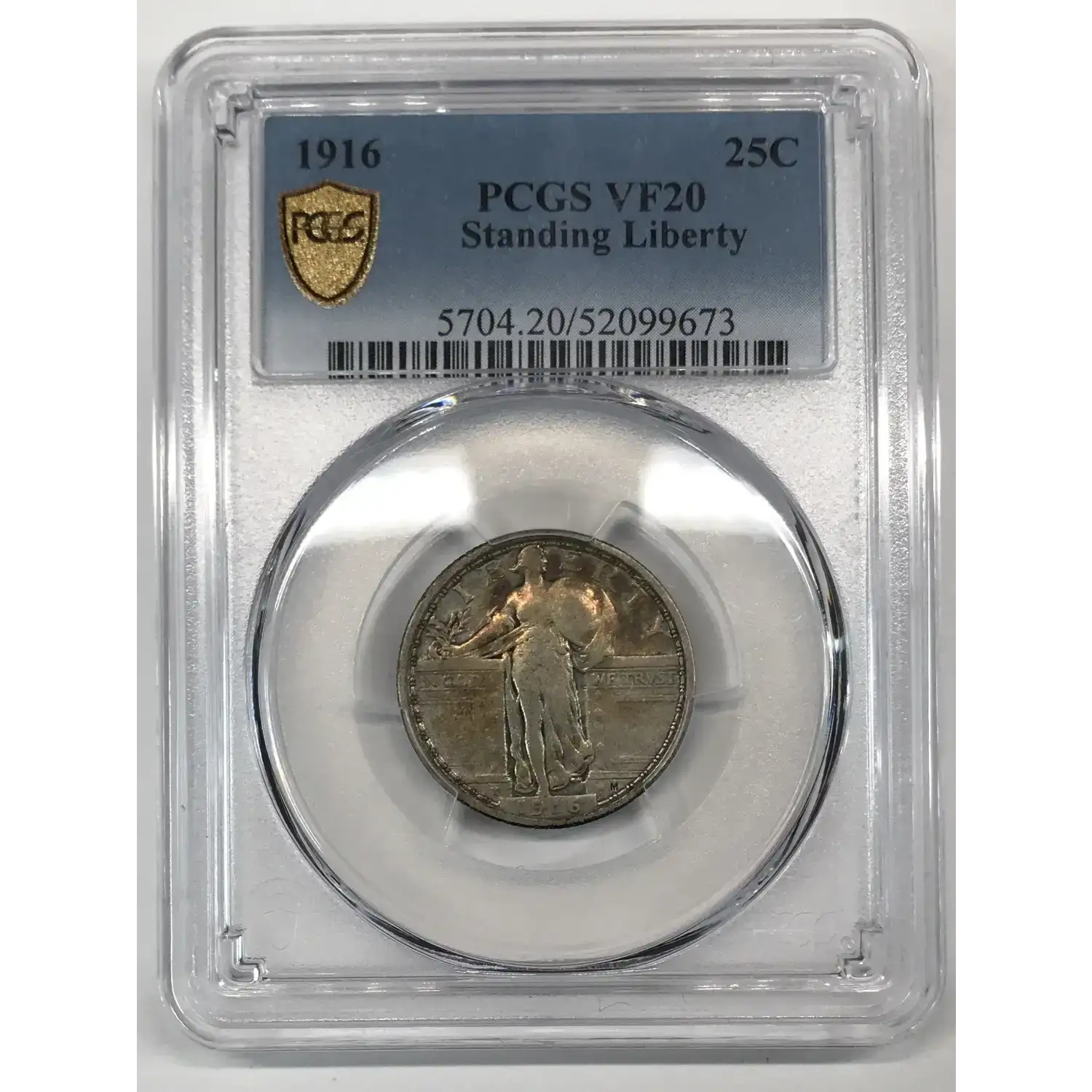 1916 P Standing Liberty Quarter PCGS VF-20 - Toned