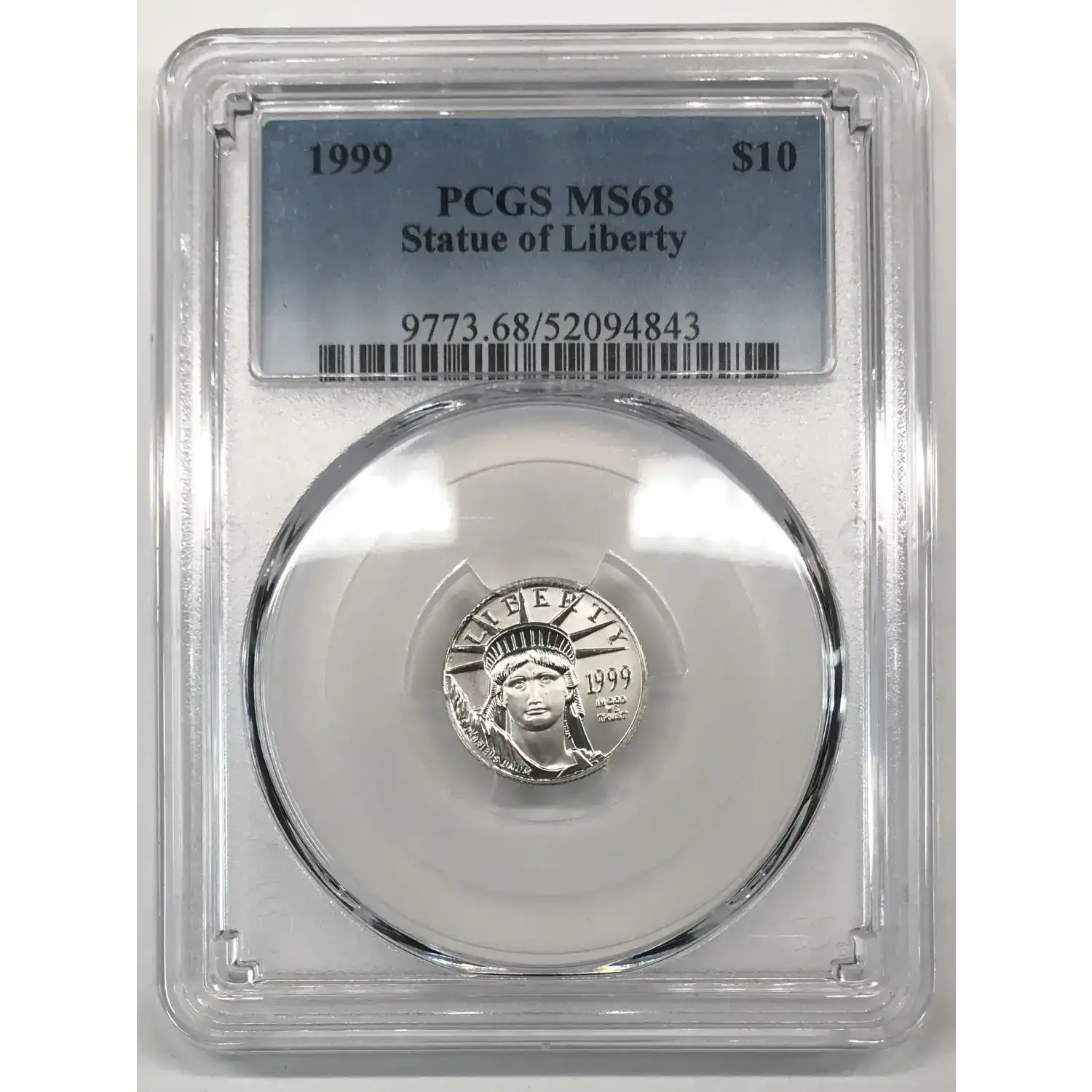 1999 1/10 oz $10 Platinum Eagle PCGS MS-68 - Statue of Liberty