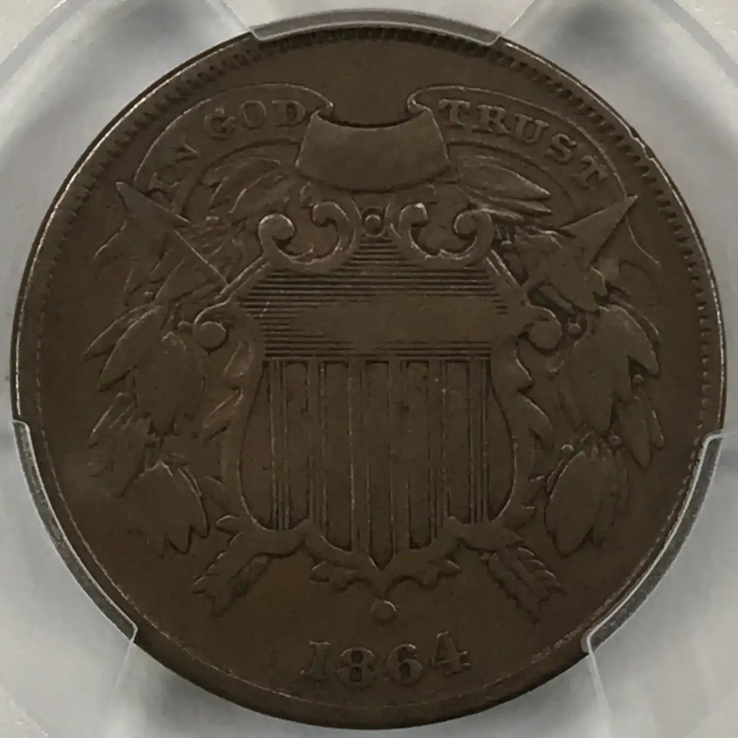 1864 P Small Motto Two-Cent Piece (2c) PCGS VF Detail (environmental damage) - nice coin & obverse, some E.D. on reverse