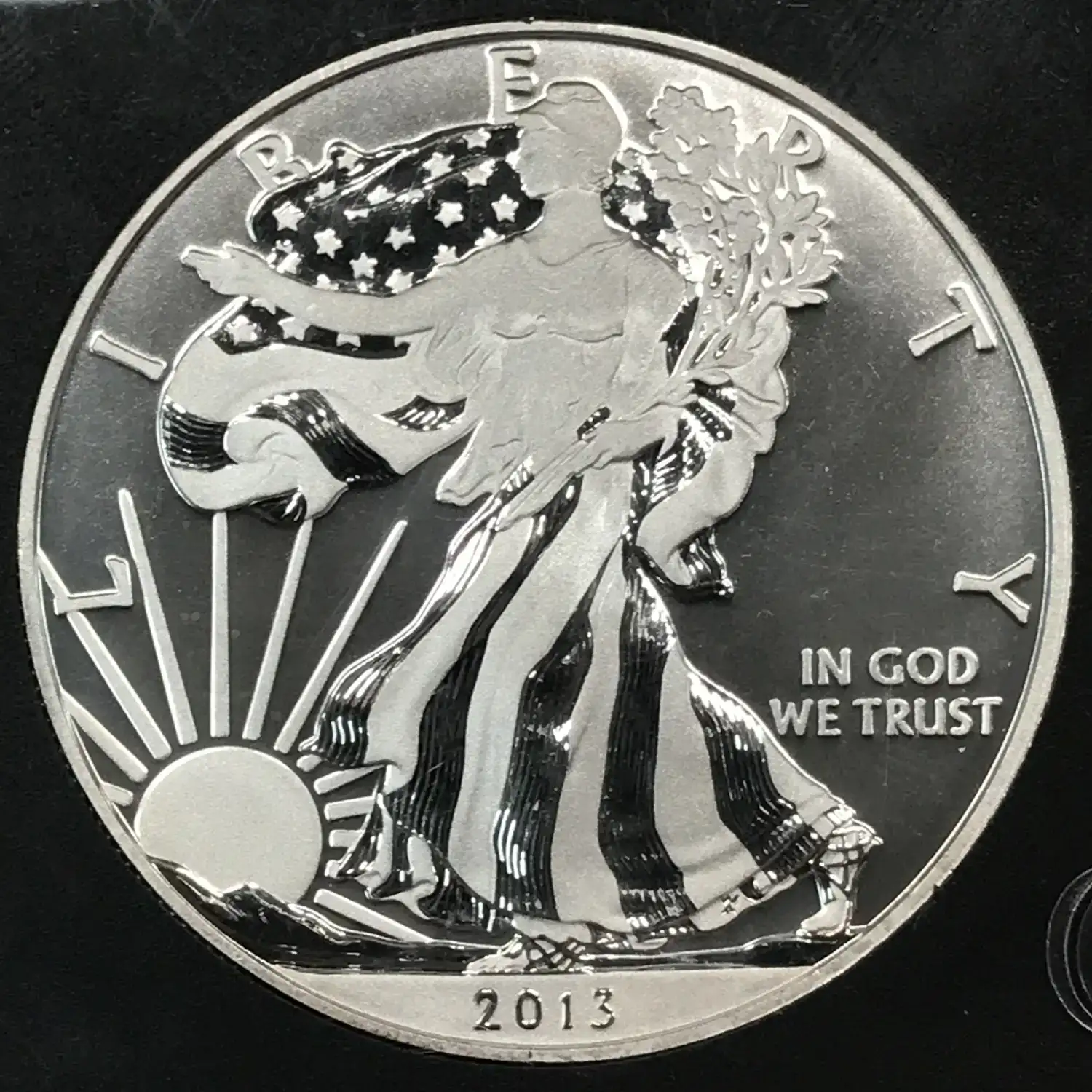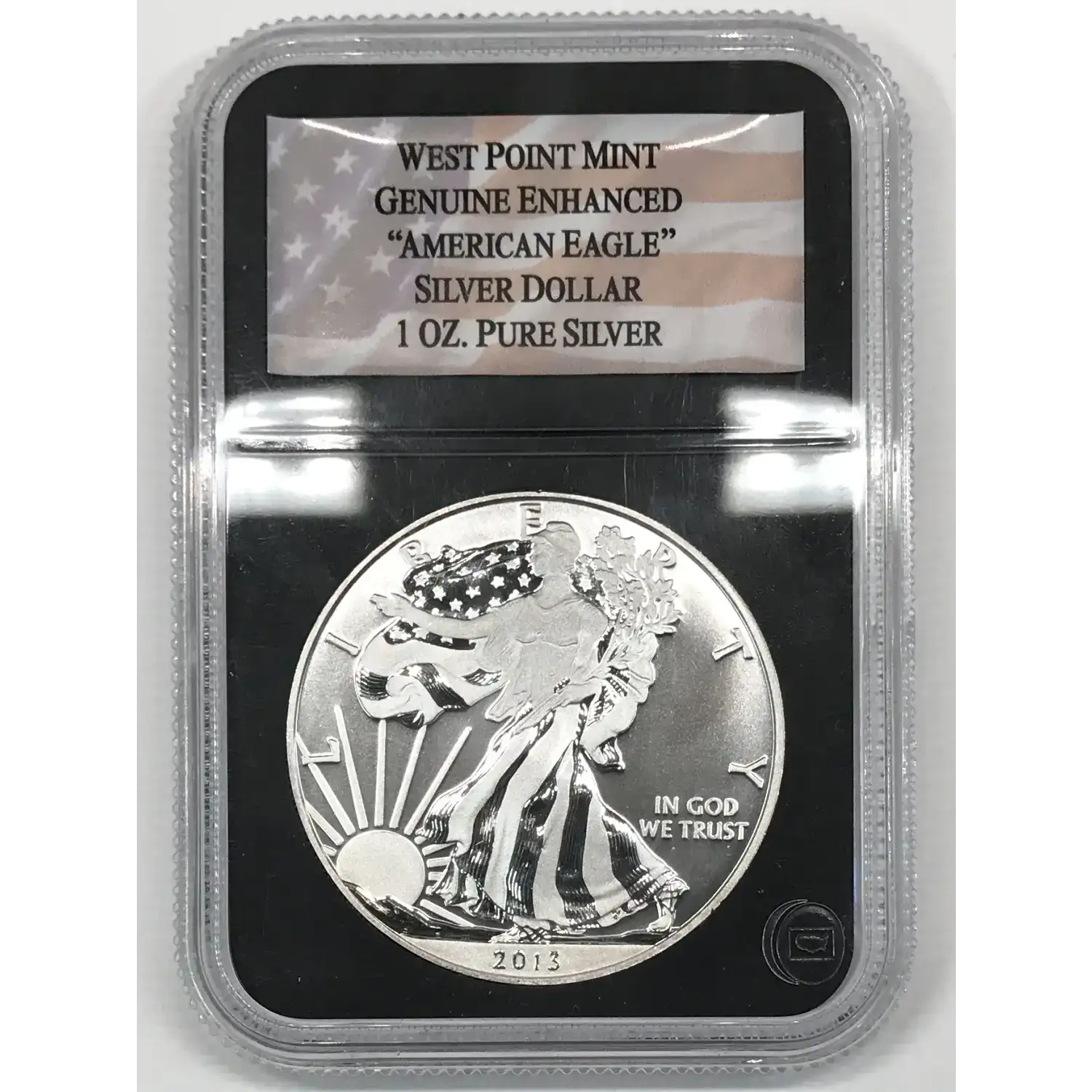 2013-W Enhanced Uncirculated Silver Eagle from West Point Set - PCS Stamps & Coins Holder - coin has spots on reverse