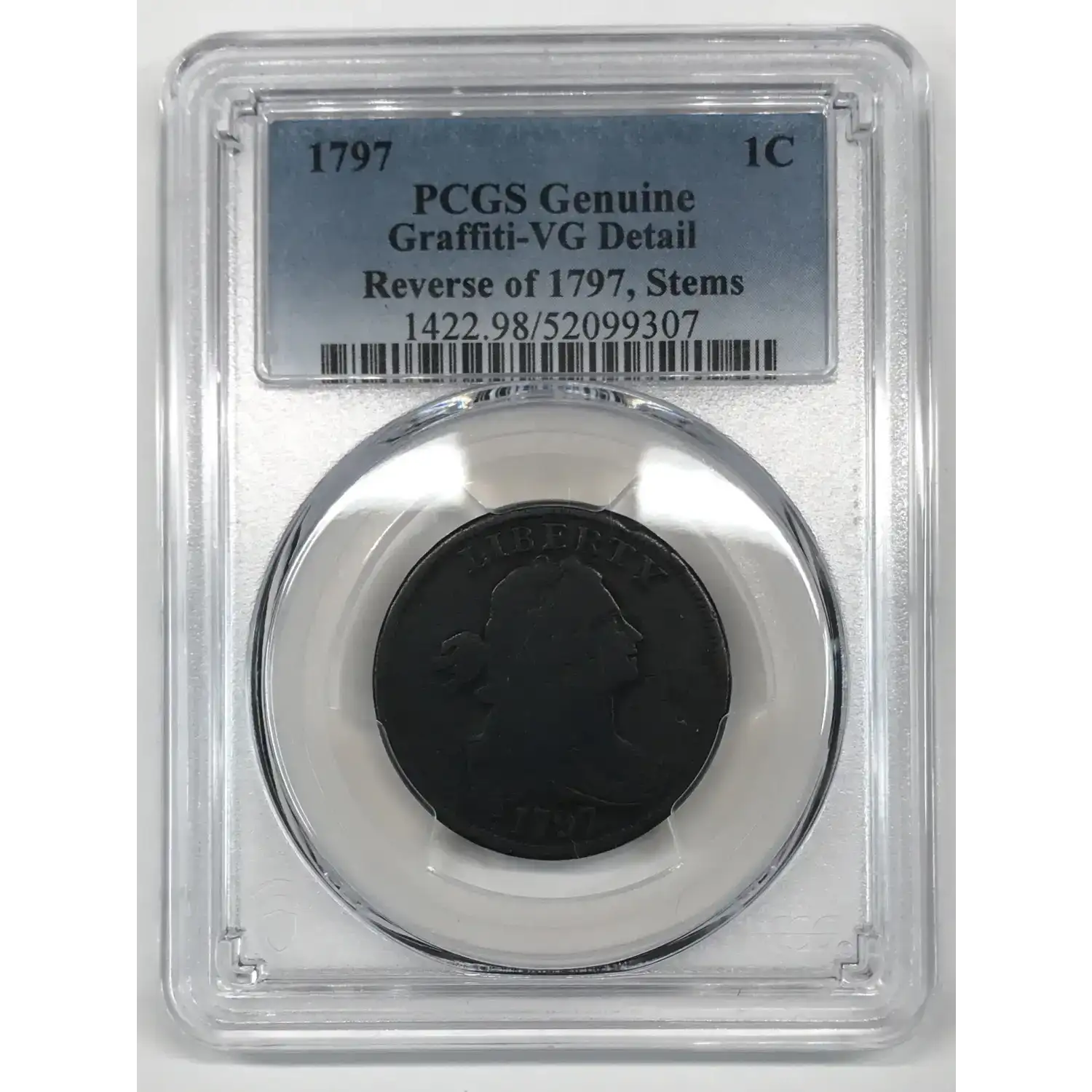 1797 Draped Bust Large Cent PCGS Genuine - VG Details (98 - Damage) BN Reverse of 1797, Stems