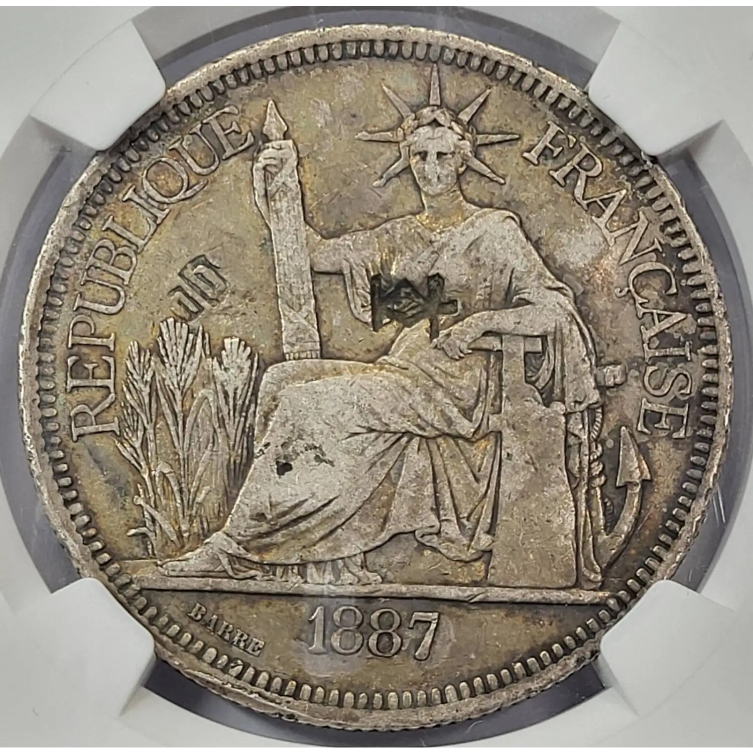 1887 FRENCH INDO-CHINA Silver PIASTRE NGC CHOPMARKED A