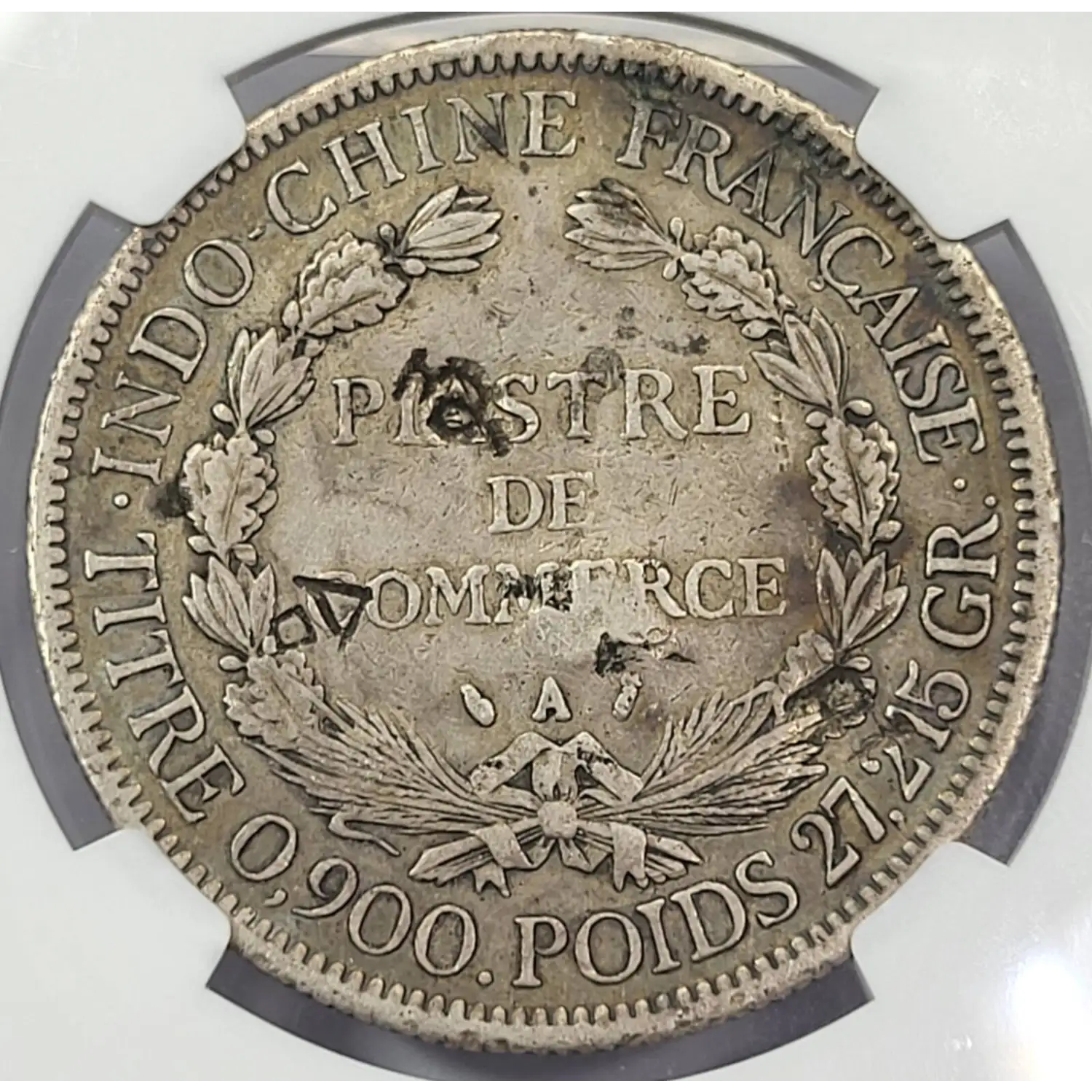 1887 FRENCH INDO-CHINA Silver PIASTRE NGC CHOPMARKED A KM#5