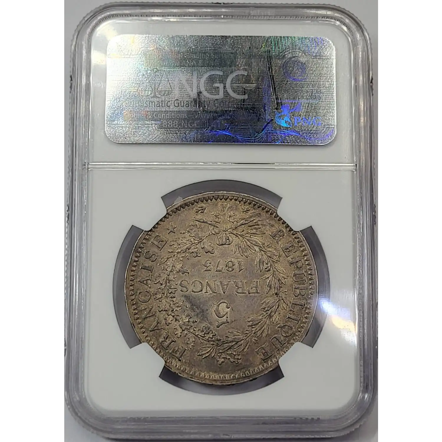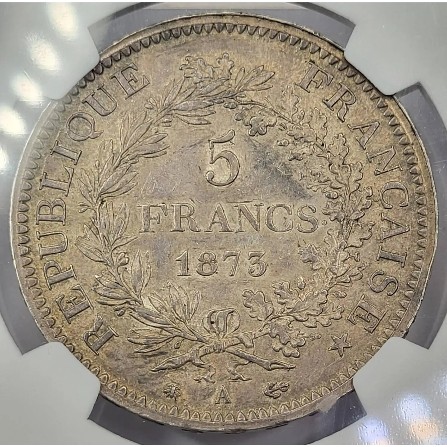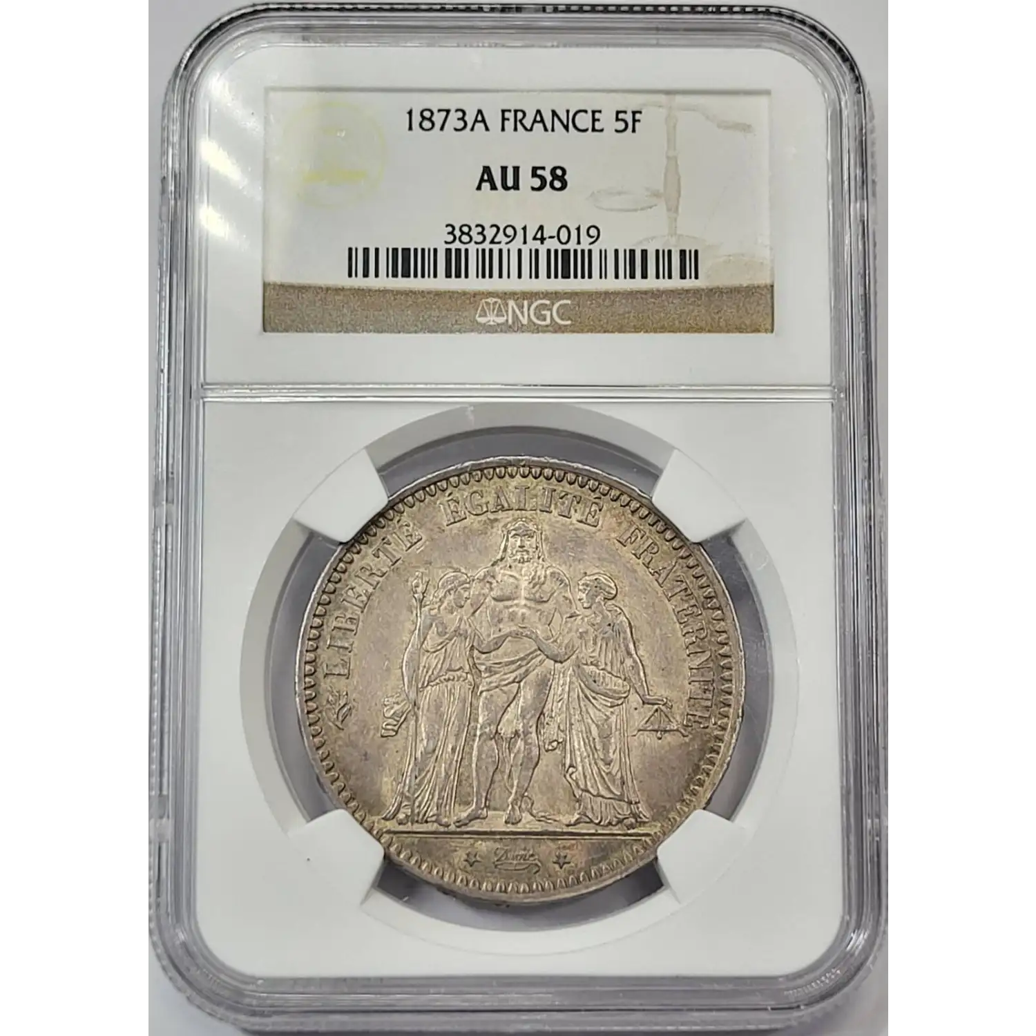 1873 FRANCE Silver 5 FRANCS NGC AU-58 A KM#820.1 A