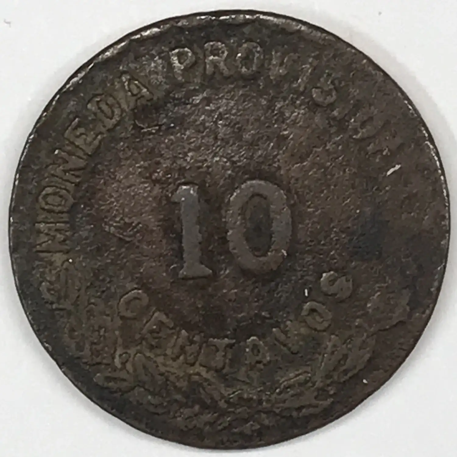 1915 Oaxaca Mexico Revolutionary Copper 10 Centavos - Provisional Government Money - Long Pointed Truncation, KM#722