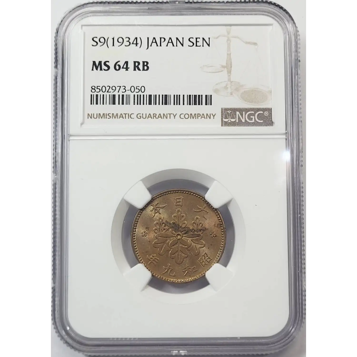 S9 1934 JAPAN Bronze SEN NGC MS-64 BN Y#47