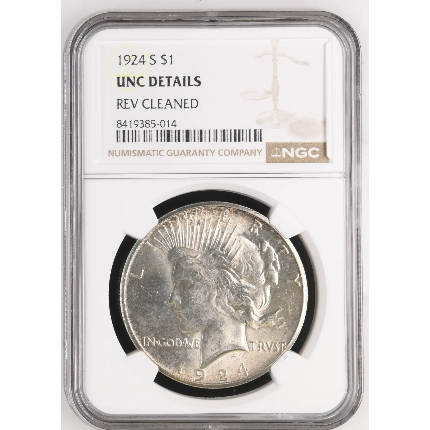 1924-S Peace Silver Dollar NGC UNC Details (rev cleaned) - nice coin despite details grade - perhaps some cleaning near mintmark on reverse