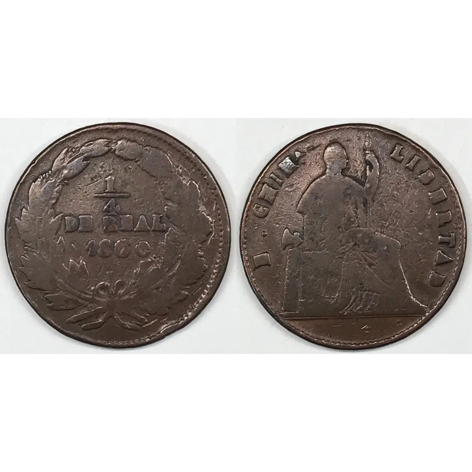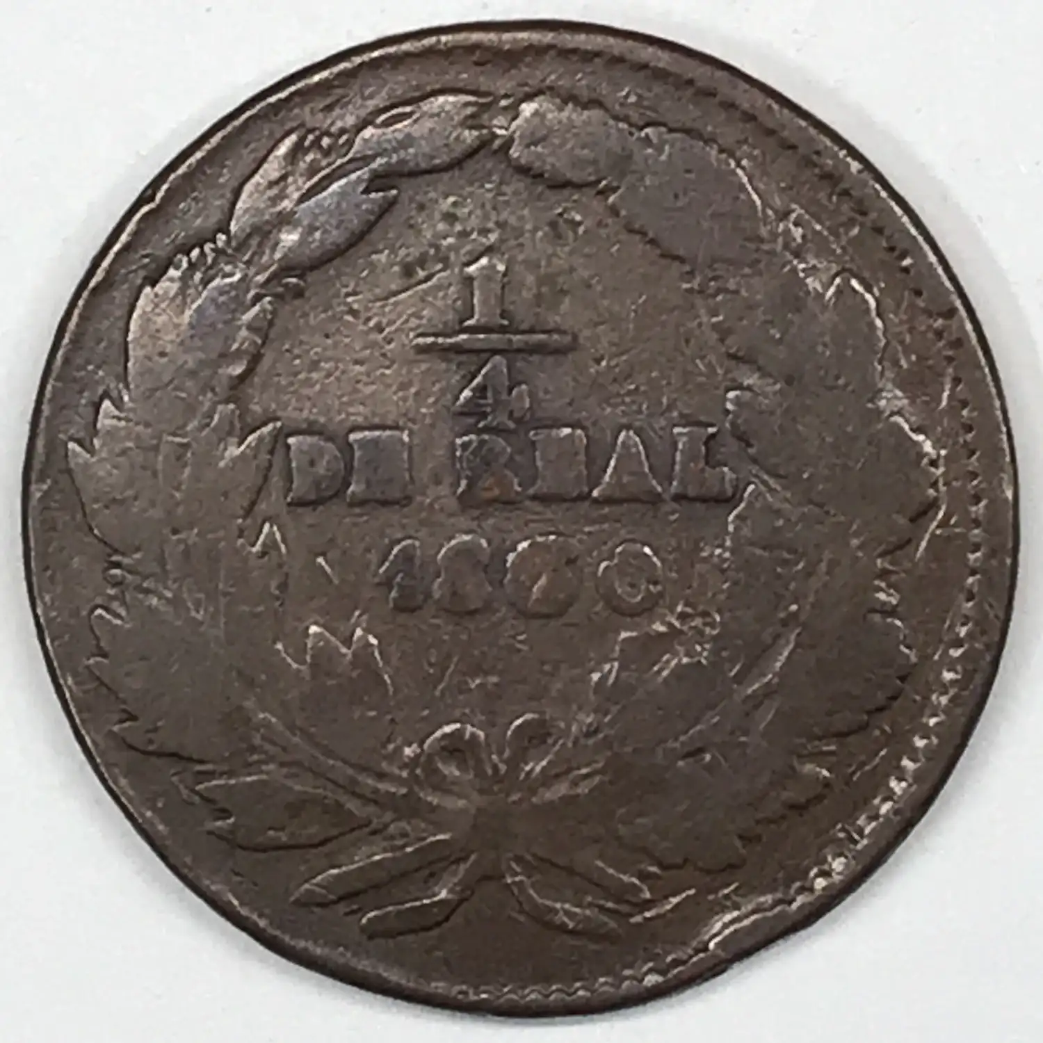 1860 Mexico Copper 1/4 REAL (Un Quarto/Una Quartilla) Chihuahua