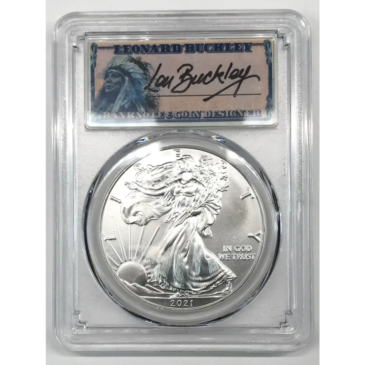 2021 Type 1 Silver Eagle PCGS MS-70 First Strike Leonard Buckley Signature Label 1 of 1000