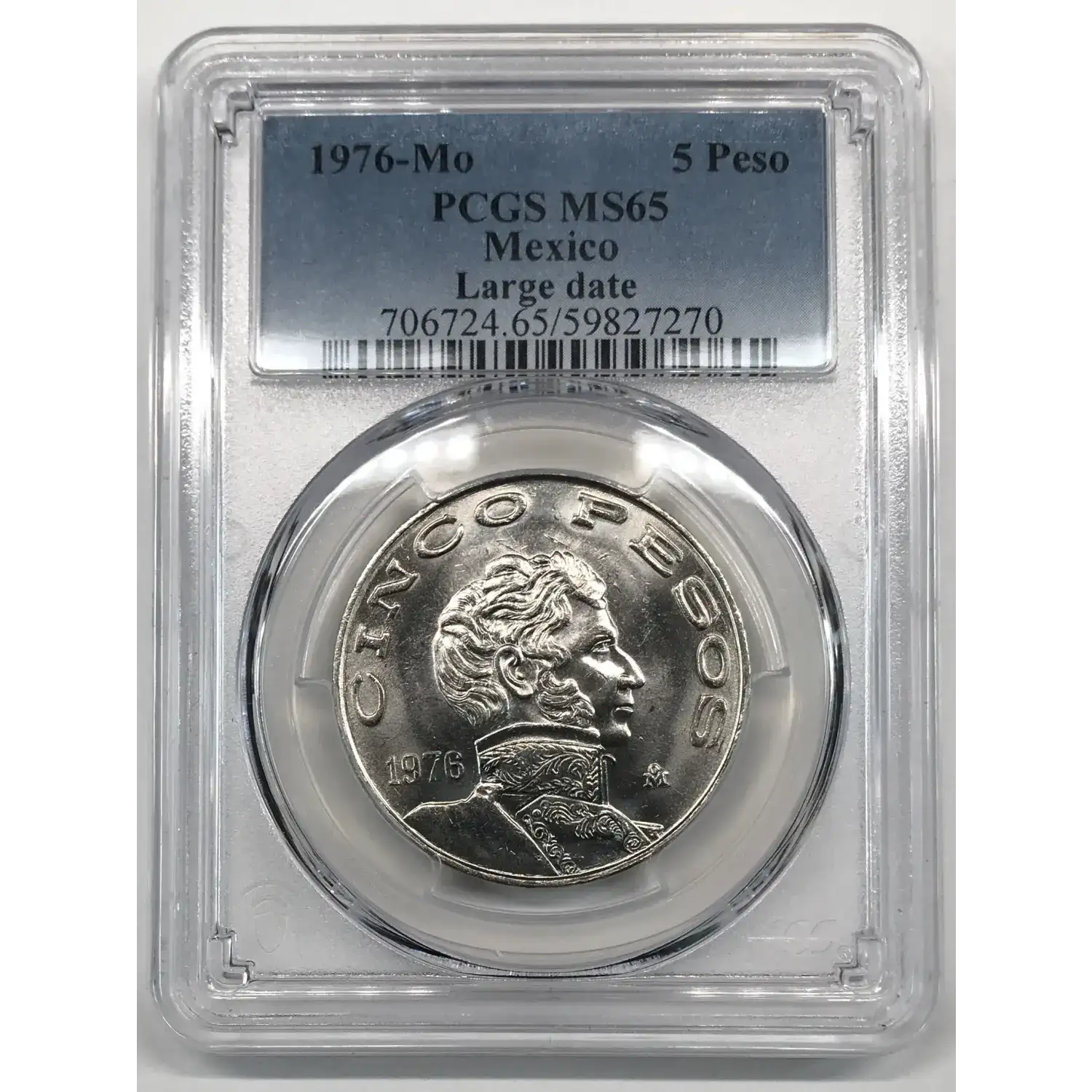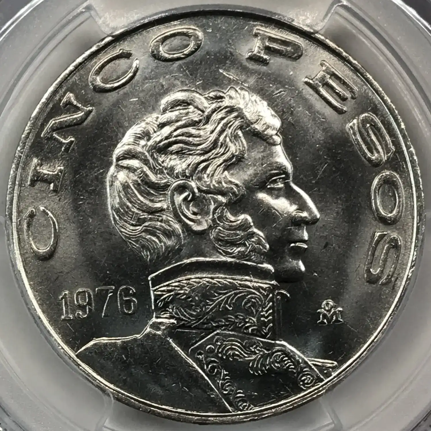 1976-Mo Large date MEXICO Copper-Nickel 5 PESOS PCGS MS-65 - KM#472
