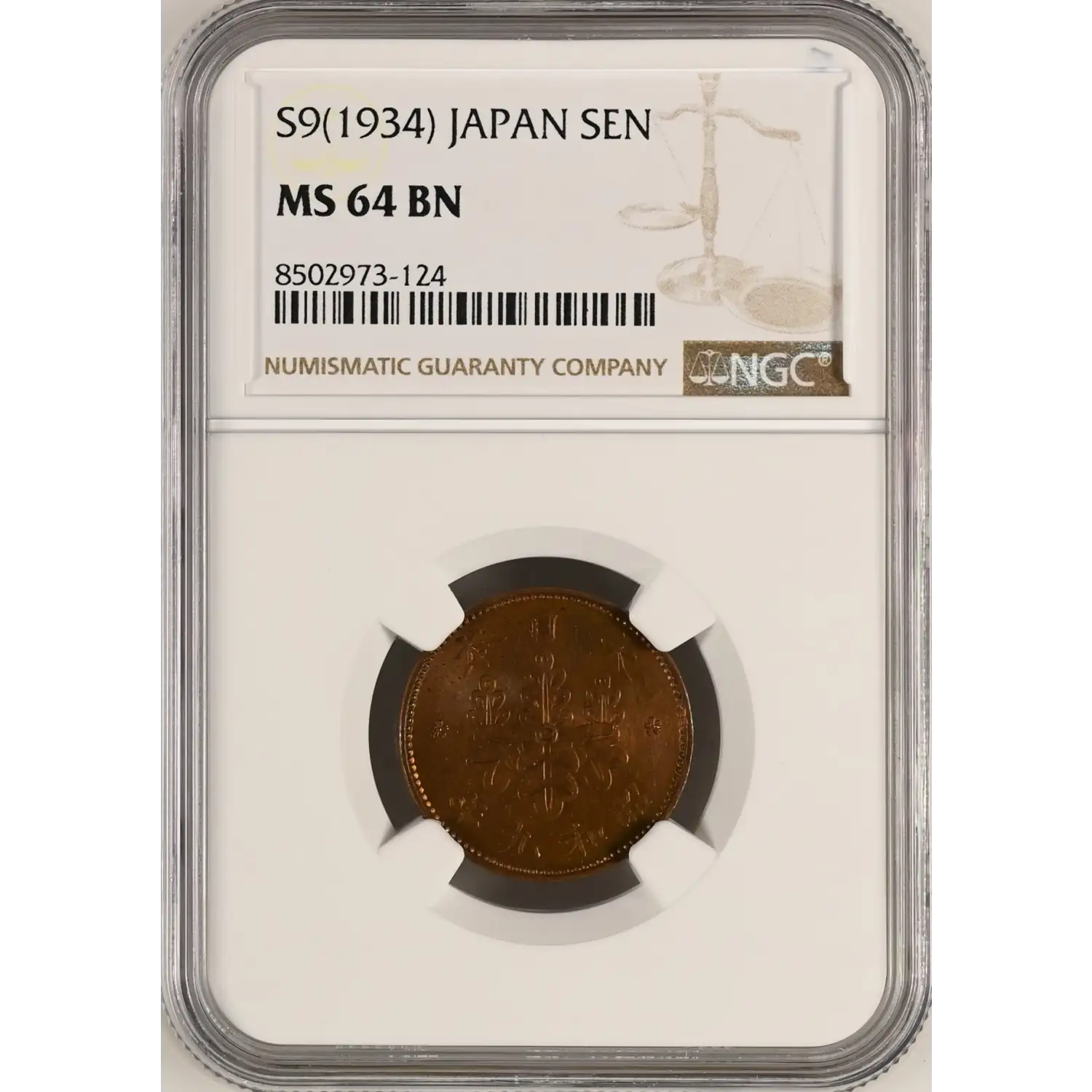 1934 JAPAN Bronze SEN NGC MS-64 BN