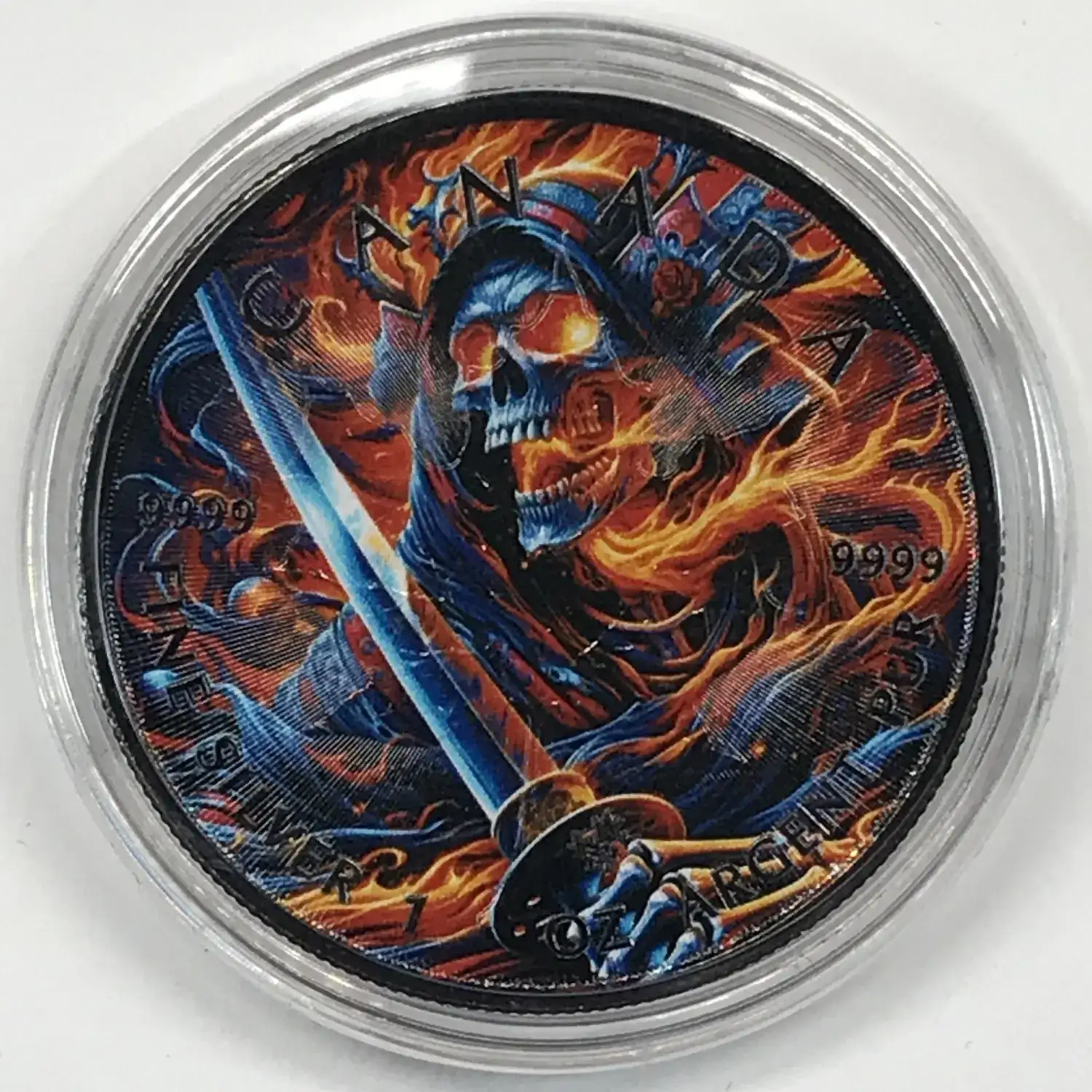 2024 Canada 1 oz Silver Maple Leaf $5 Coin Grim Reaper Samurai - Black Ruthenium, Colorized