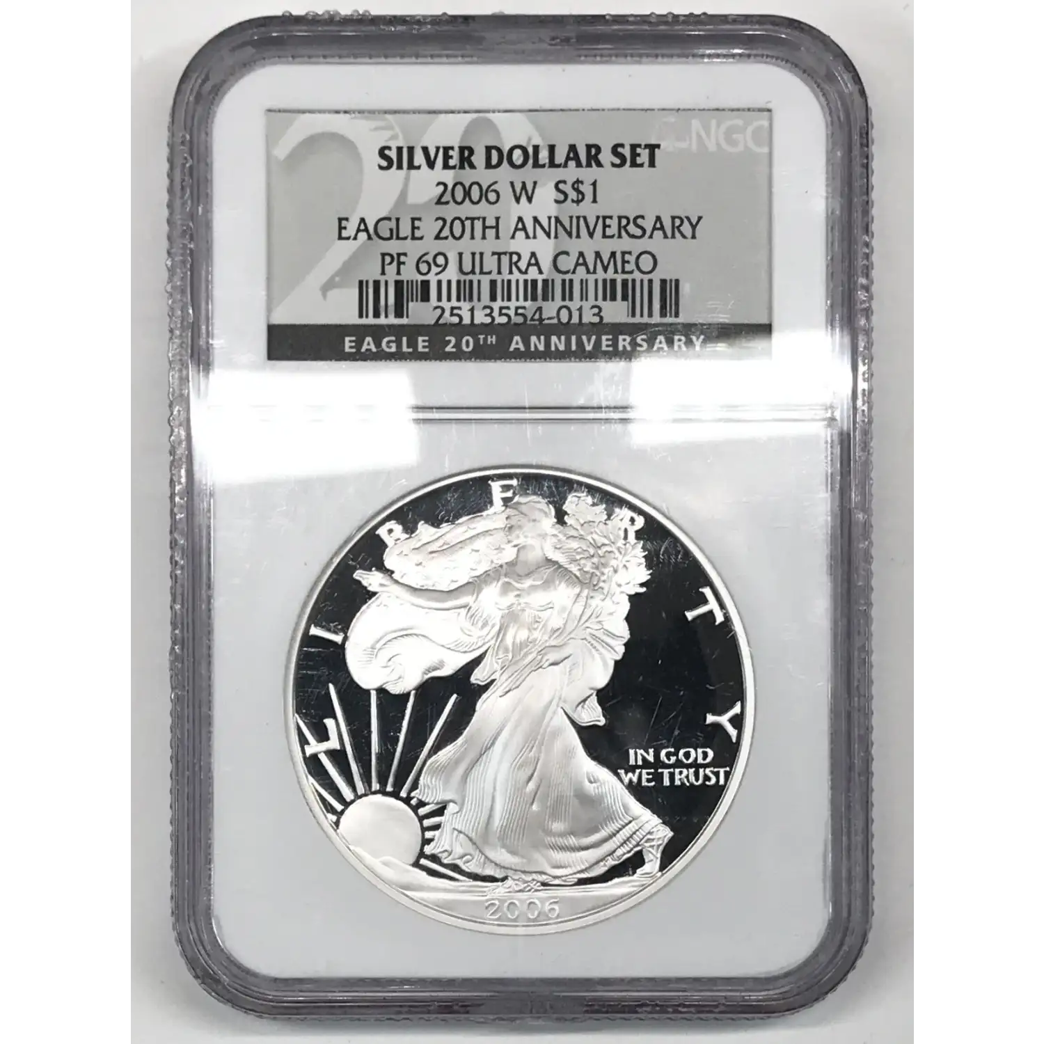 2006-W Proof Silver Eagle NGC PF-69 ULTRA CAMEO - SILVER DOLLAR SET Label, EAGLE 20th ANNIVERSARY - slab has some scratches/scuffs