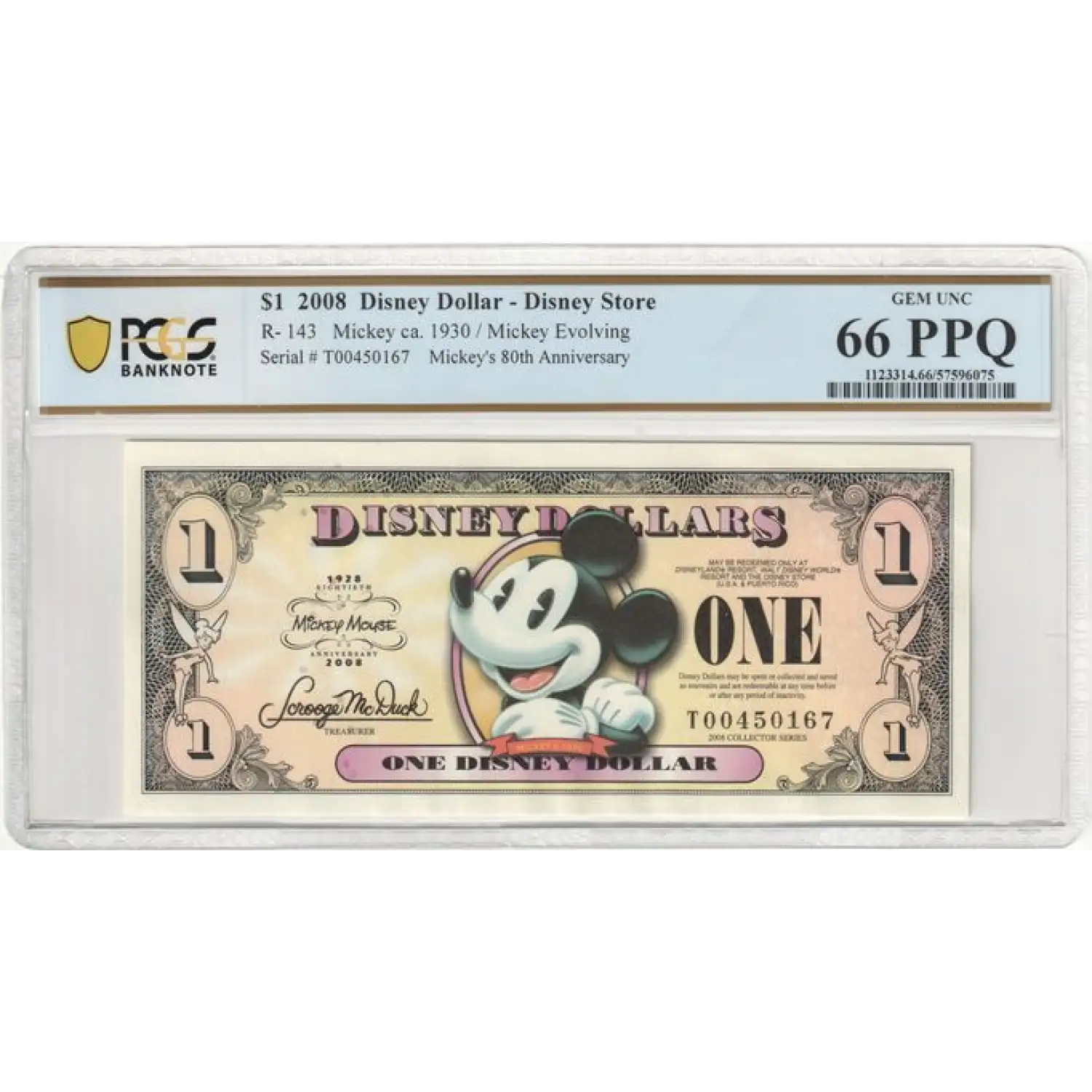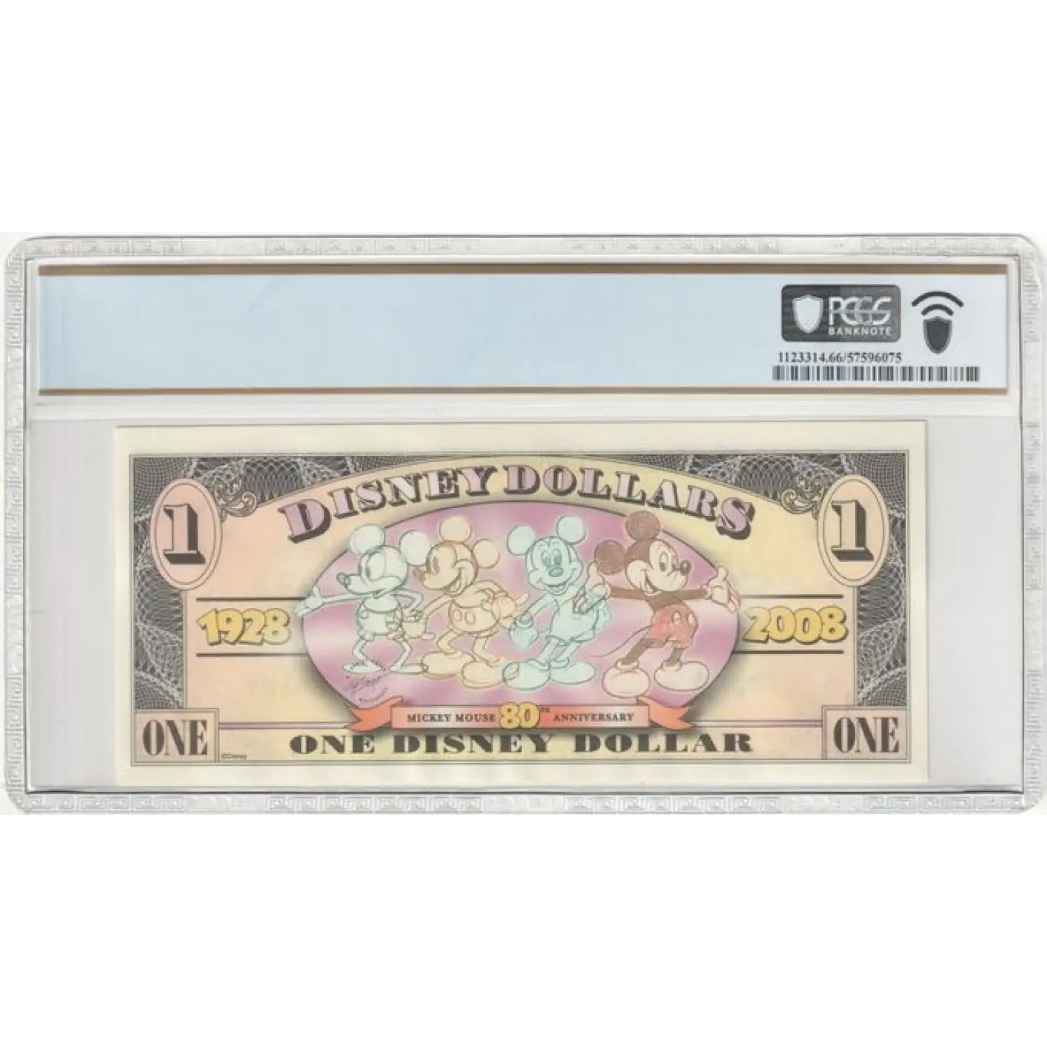 2008 $1 Disney Dollar PCGS Banknote 66 PPQ - Mickey 80th Anniversary - R-143, c. 1930 Mickey / Mickey Evolving