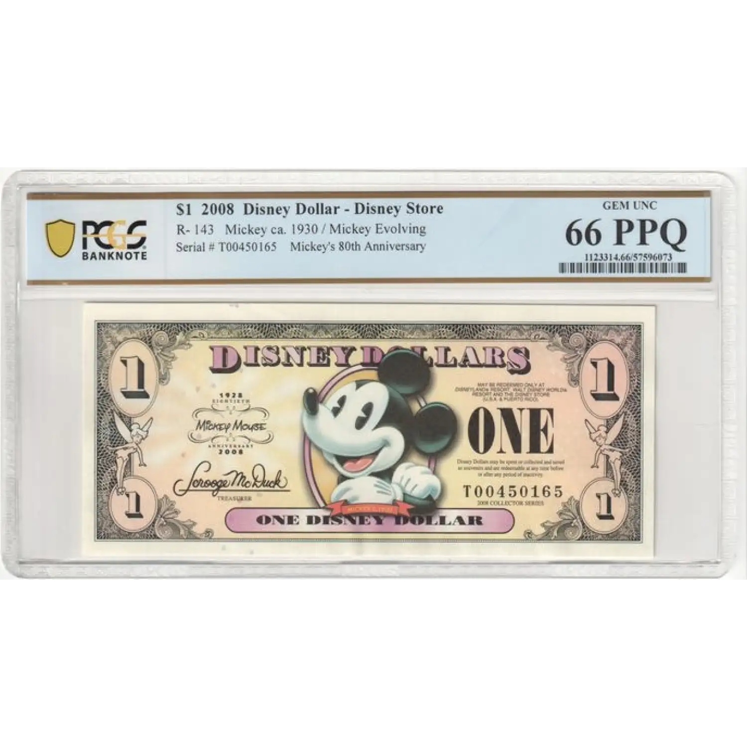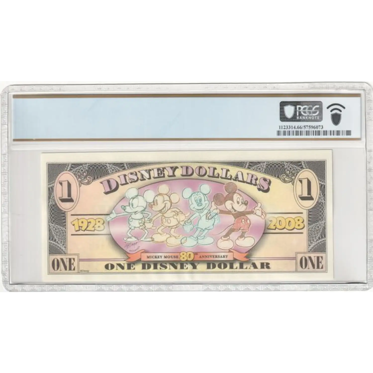 2008 $1 Disney Dollar PCGS Banknote 66 PPQ - Mickey 80th Anniversary - R-143, c. 1930 Mickey / Mickey Evolving