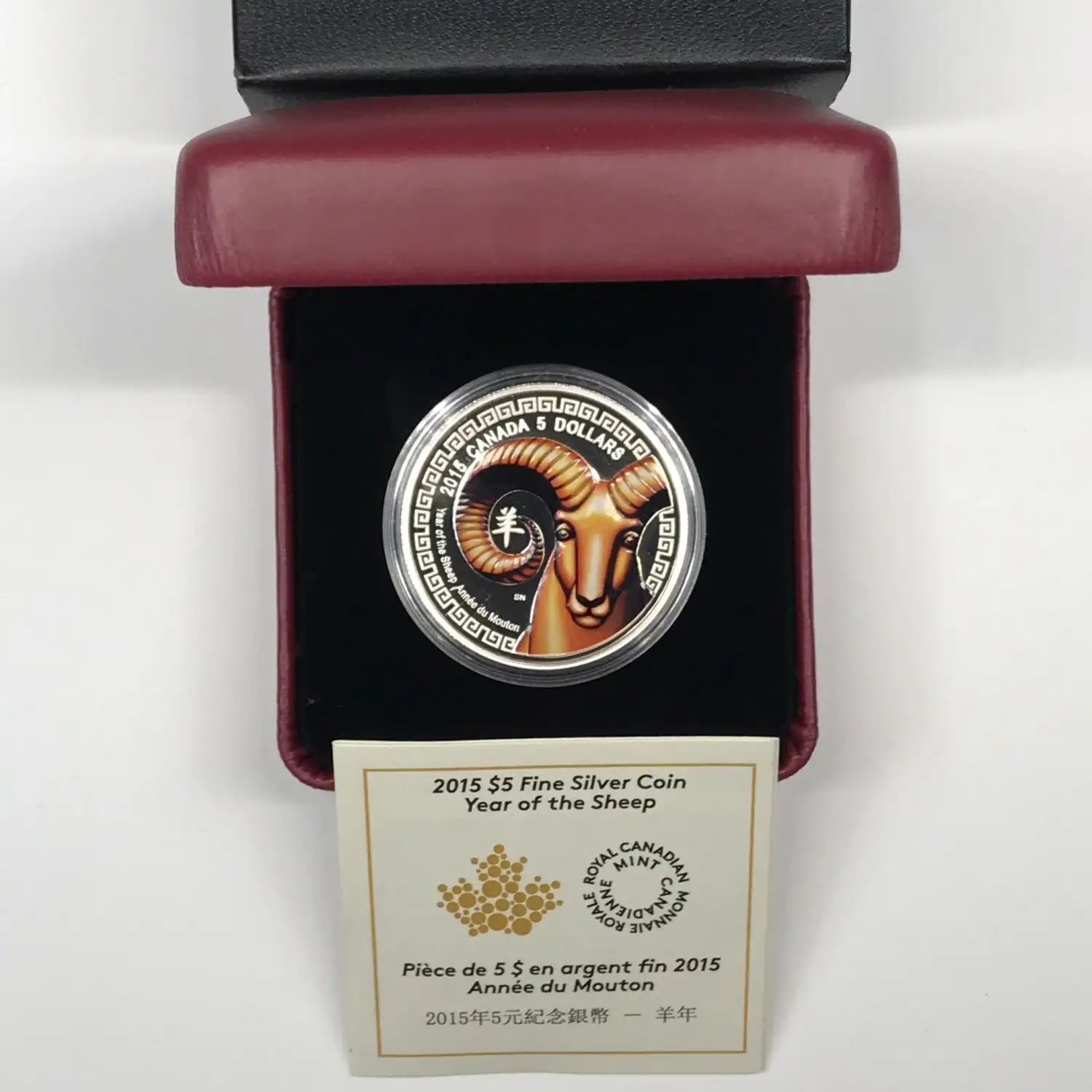 2015 Canada ~3/4 oz Silver $5 Coin Year of the Sheep Colorized