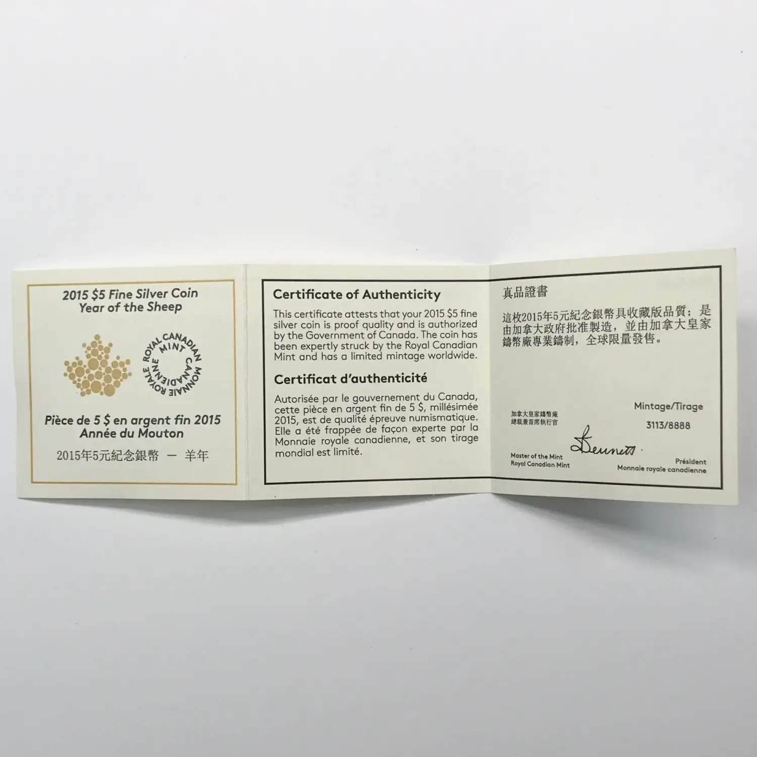 2015 Year of the Sheep Colorized Canada ~3/4 oz Silver $5 Coin w OGP - Box & COA