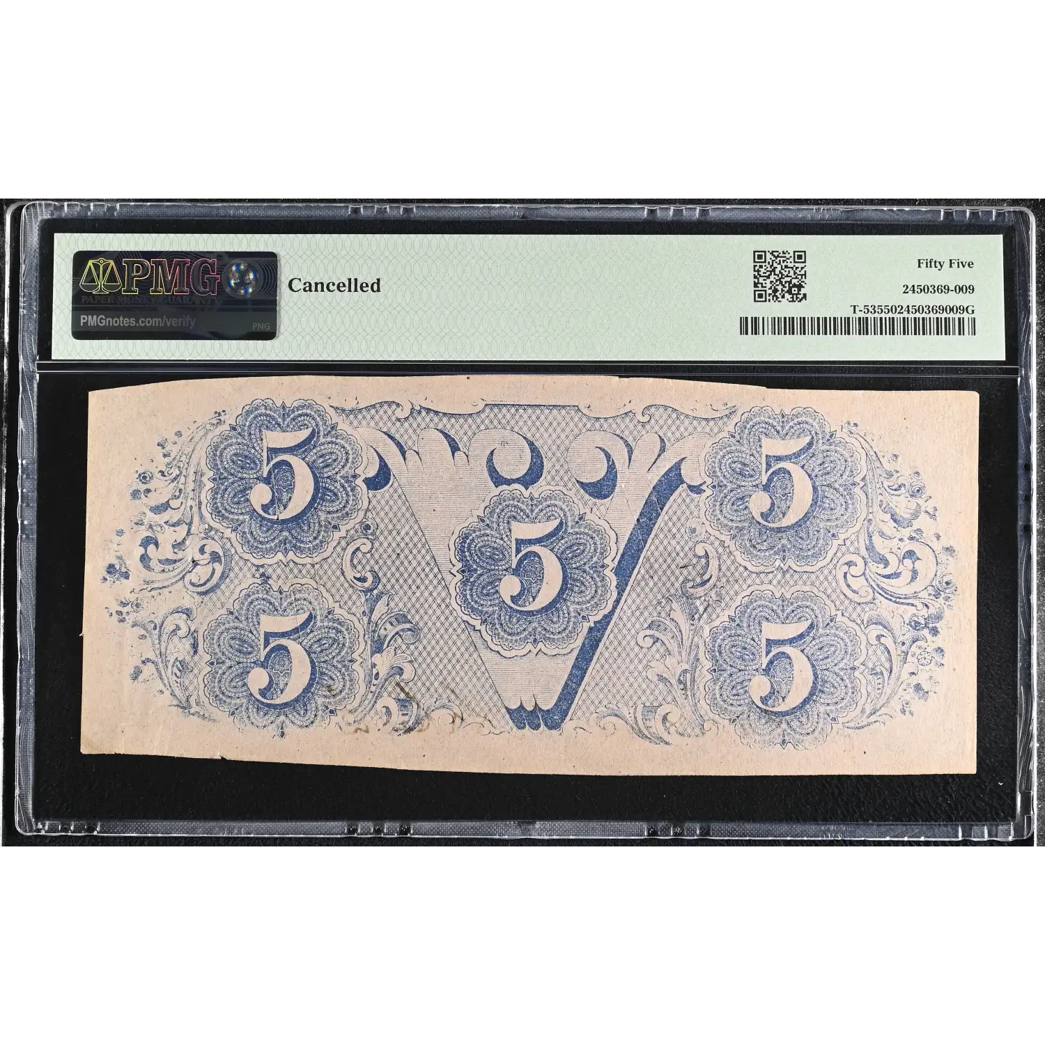 1862 Confederate States of America (CSA) $5 Note T-53 PMG AU 55 (cancelled)