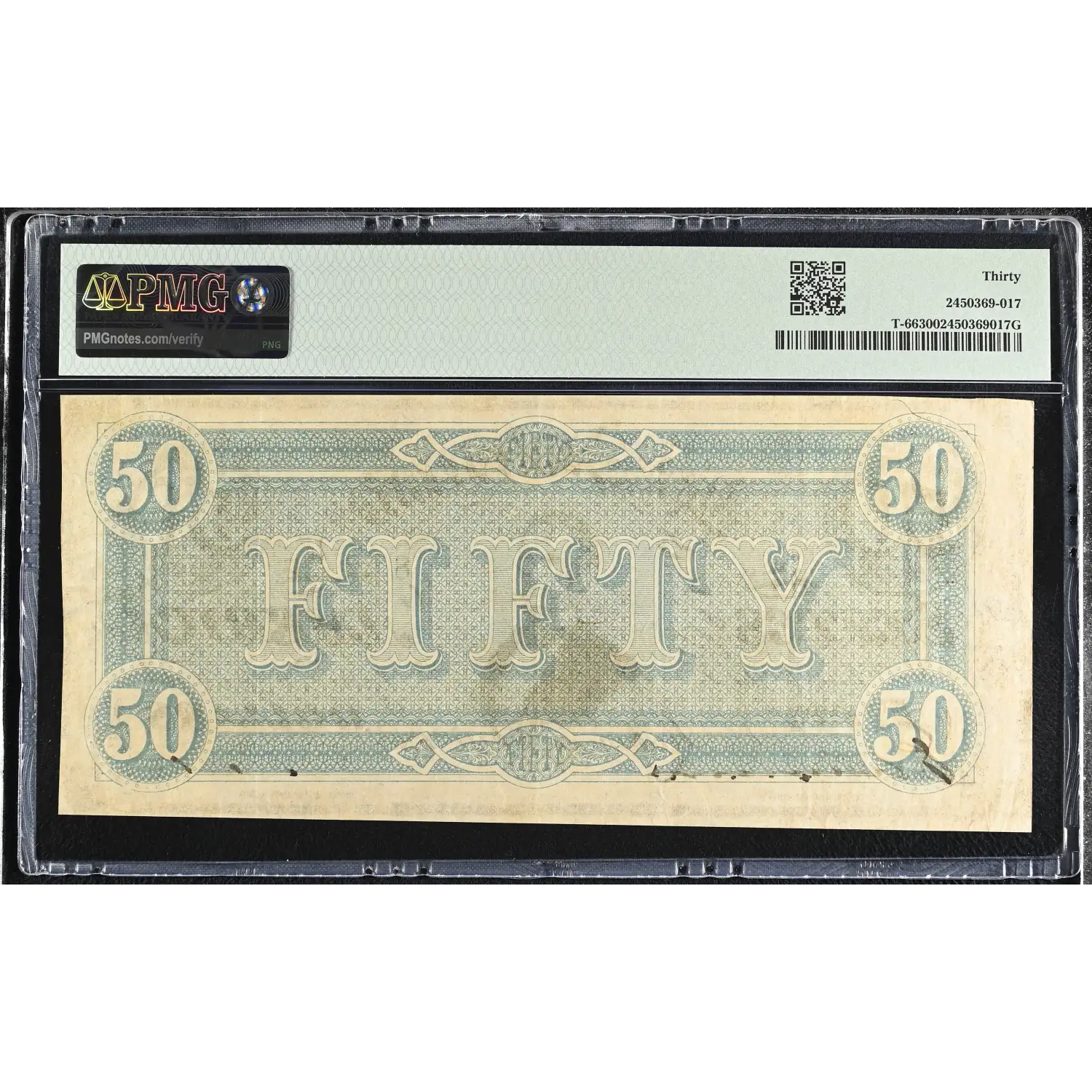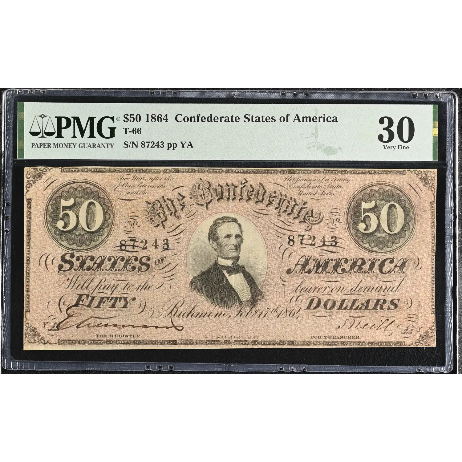 1864 Confederate States of America (CSA) $50 Note T-66 PMG VF 30