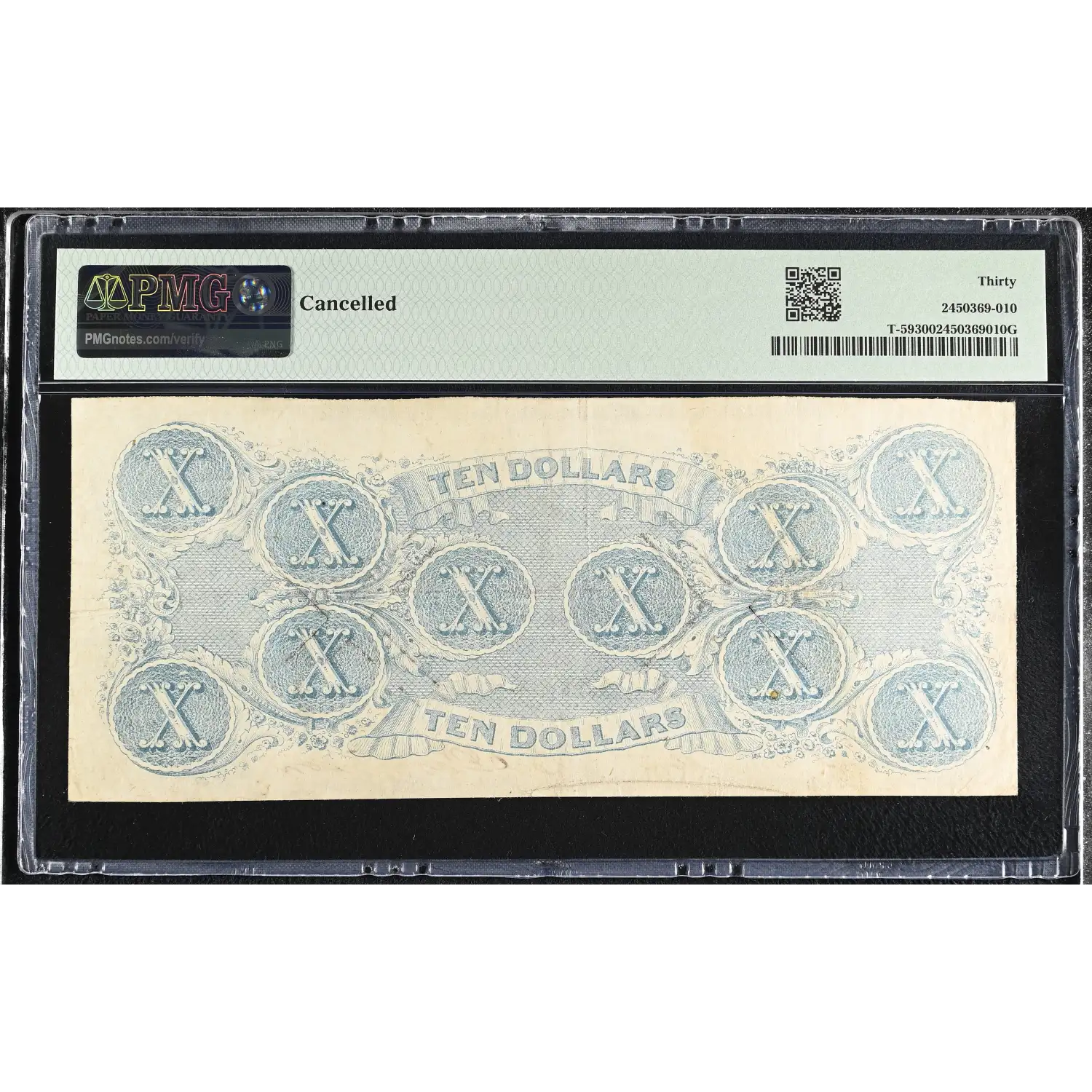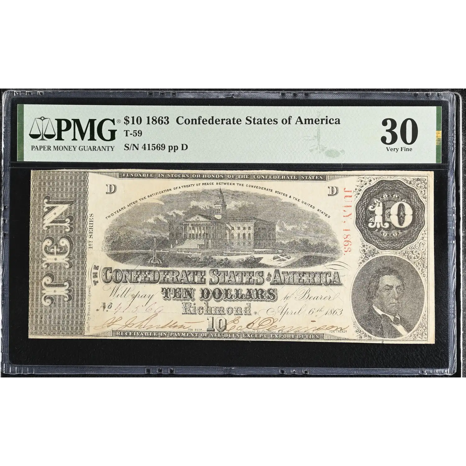 1863 Confederate States of America (CSA) $10 Note T-59 PMG VF 30 (cancelled)