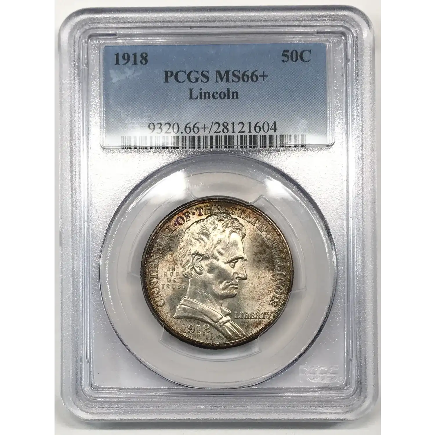 1918 P Lincoln Illinois Centennial Commemorative Half Dollar PCGS MS-66+ Plus - Toned
