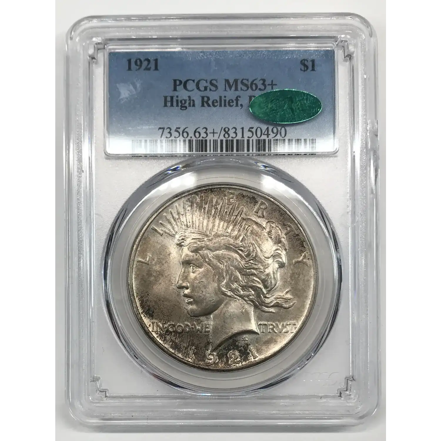 1921 Peace Silver Dollar PCGS MS-63+ High Relief CAC