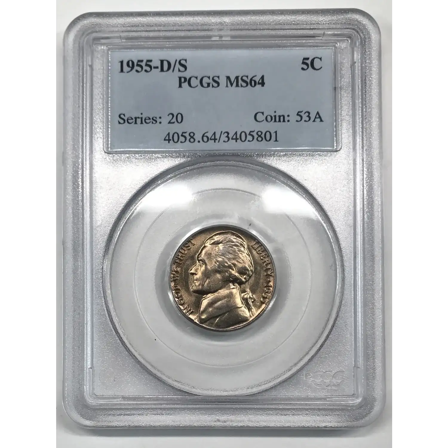 1955 D/S Jefferson Nickel PCGS MS-64 - FS-501 Overmintmark (OMM)