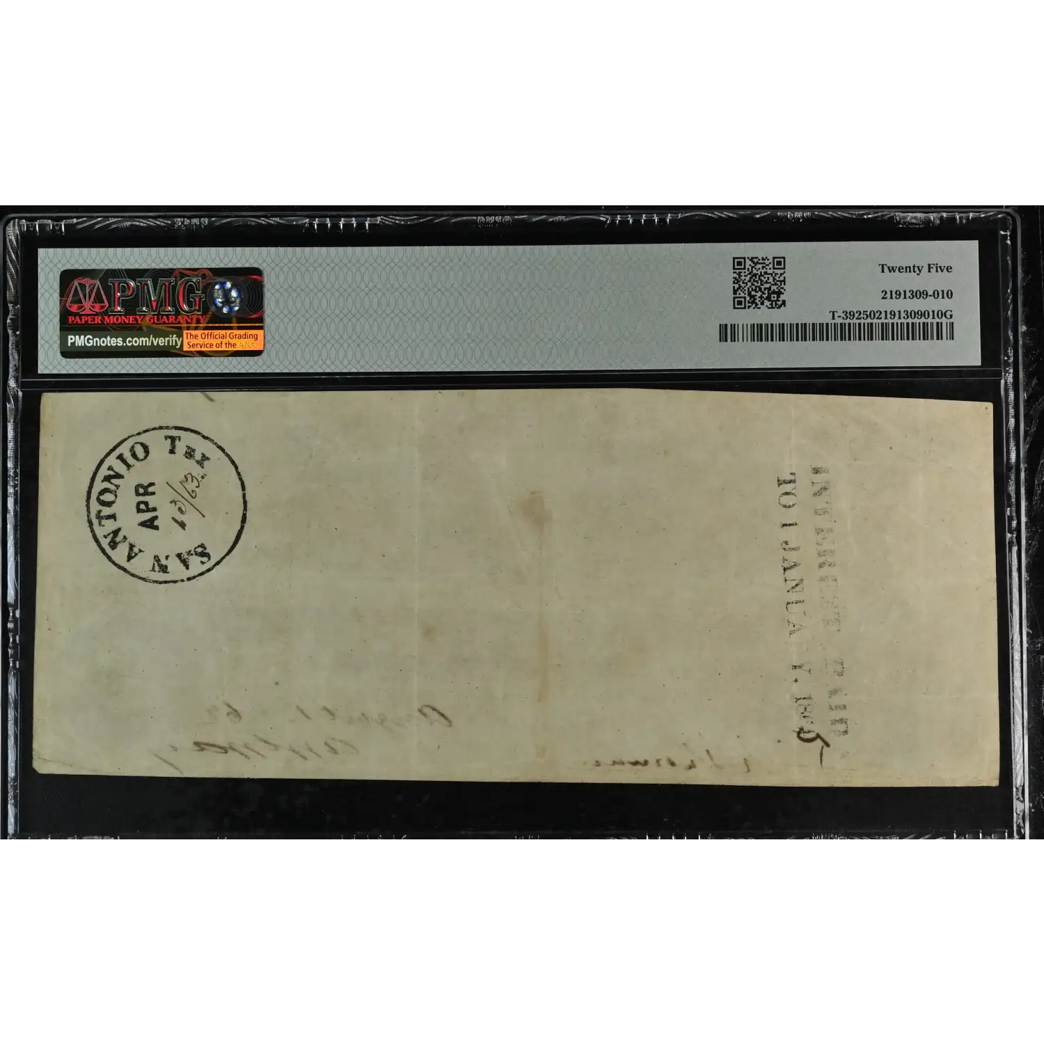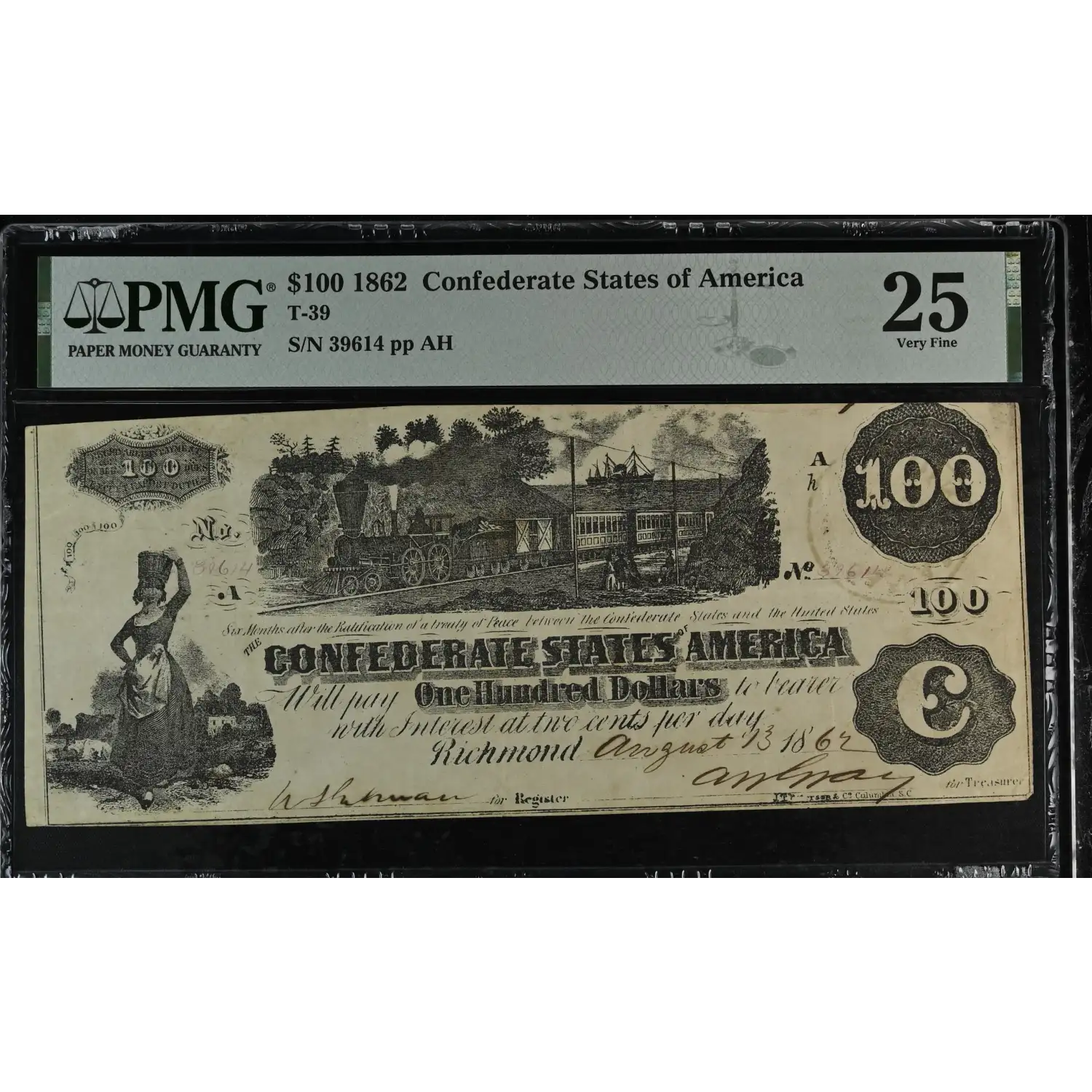 1862 Confederate States of America (CSA) $100 Note T-39 PMG VF 25 - San Antonio, TX stamp