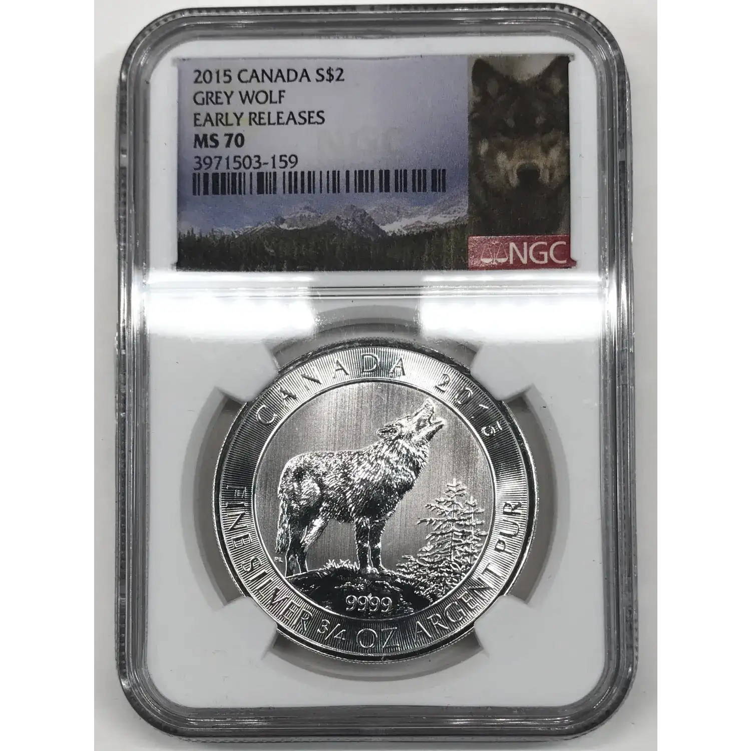 2015 Canada ~3/4 oz Silver $2 NGC MS-70 Grey Wolf Early Releases