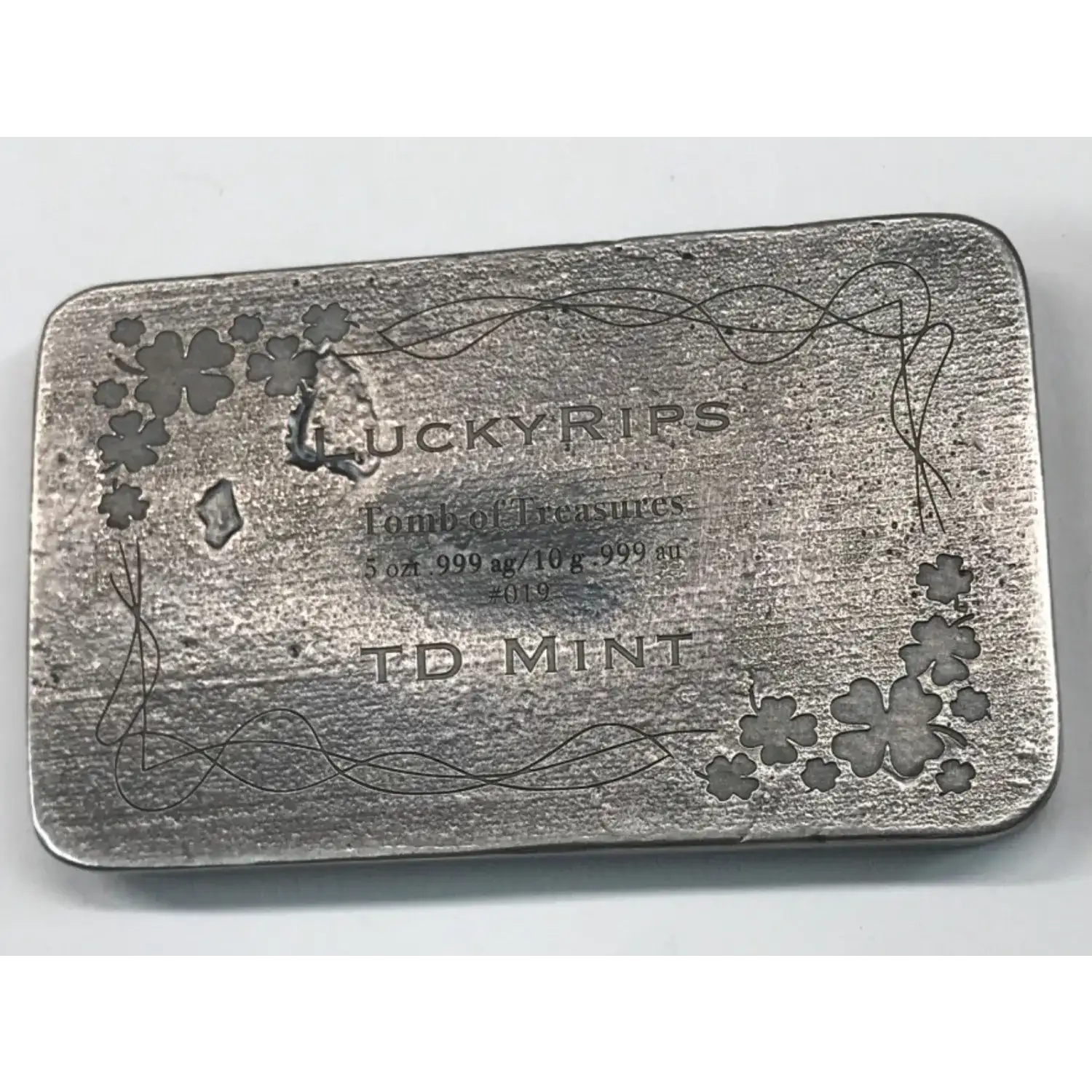 Tomb of Treasures 5 oz .999 silver bar + 10 g .999 gold - #19 - Lucky Rips - TD Mint