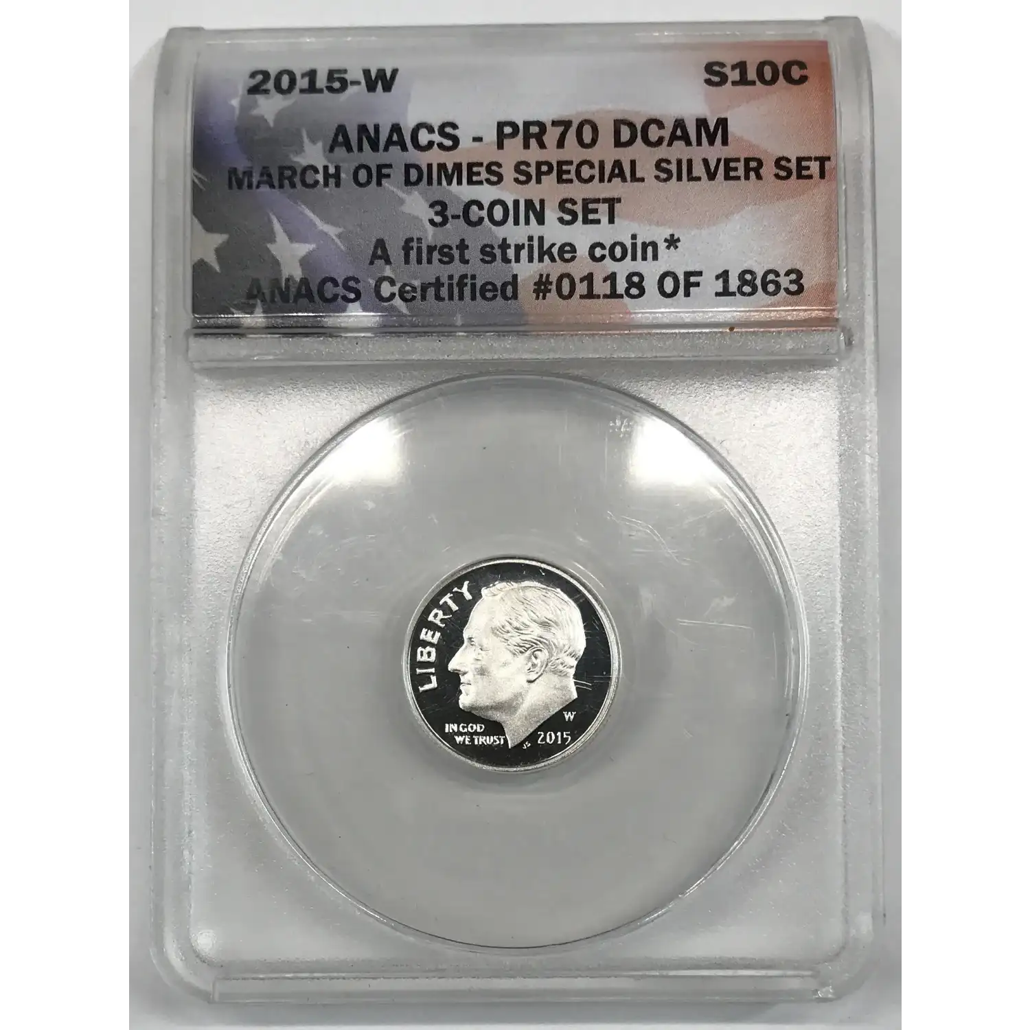 2015-W Proof Silver Roosevelt Dime ANACS PR-70 DCAM - A first strike coin - ANACS Certified #0118 of 1863 - from March of Dimes 3-Coin Special Silver Set