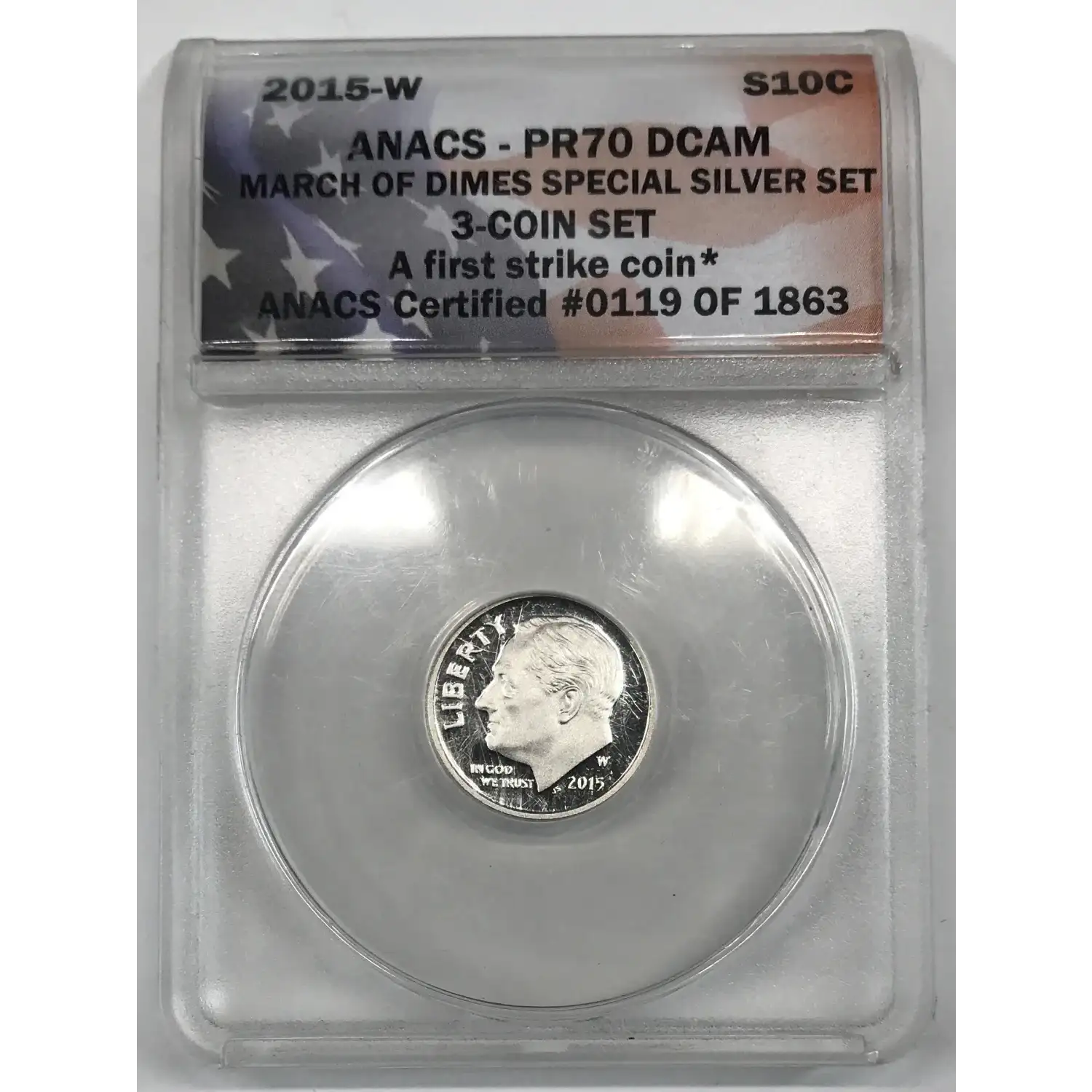 2015-W Proof Silver Roosevelt Dime ANACS PR-70 DCAM - A first strike coin - ANACS Certified #0119 of 1863 - from March of Dimes 3-Coin Special Silver Set