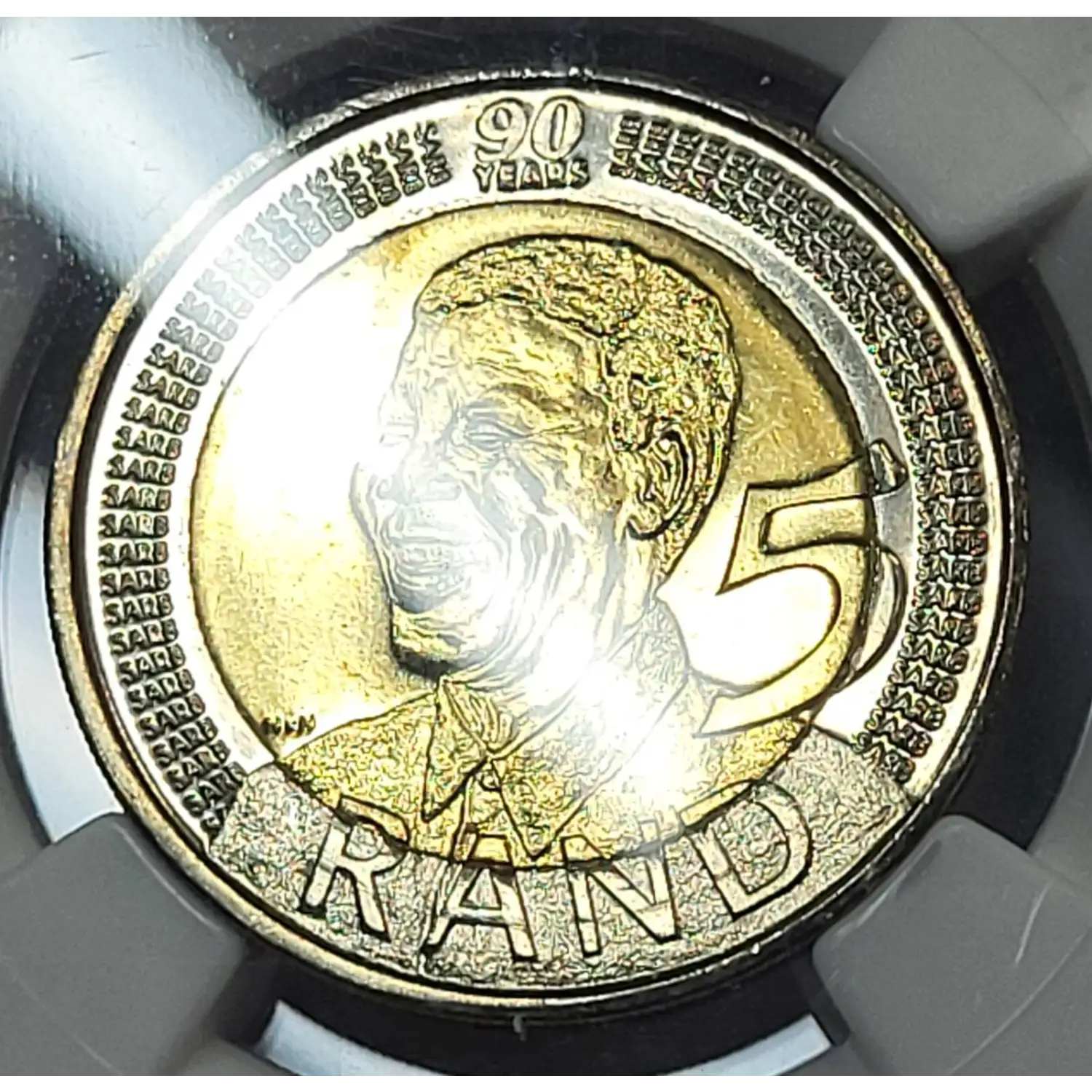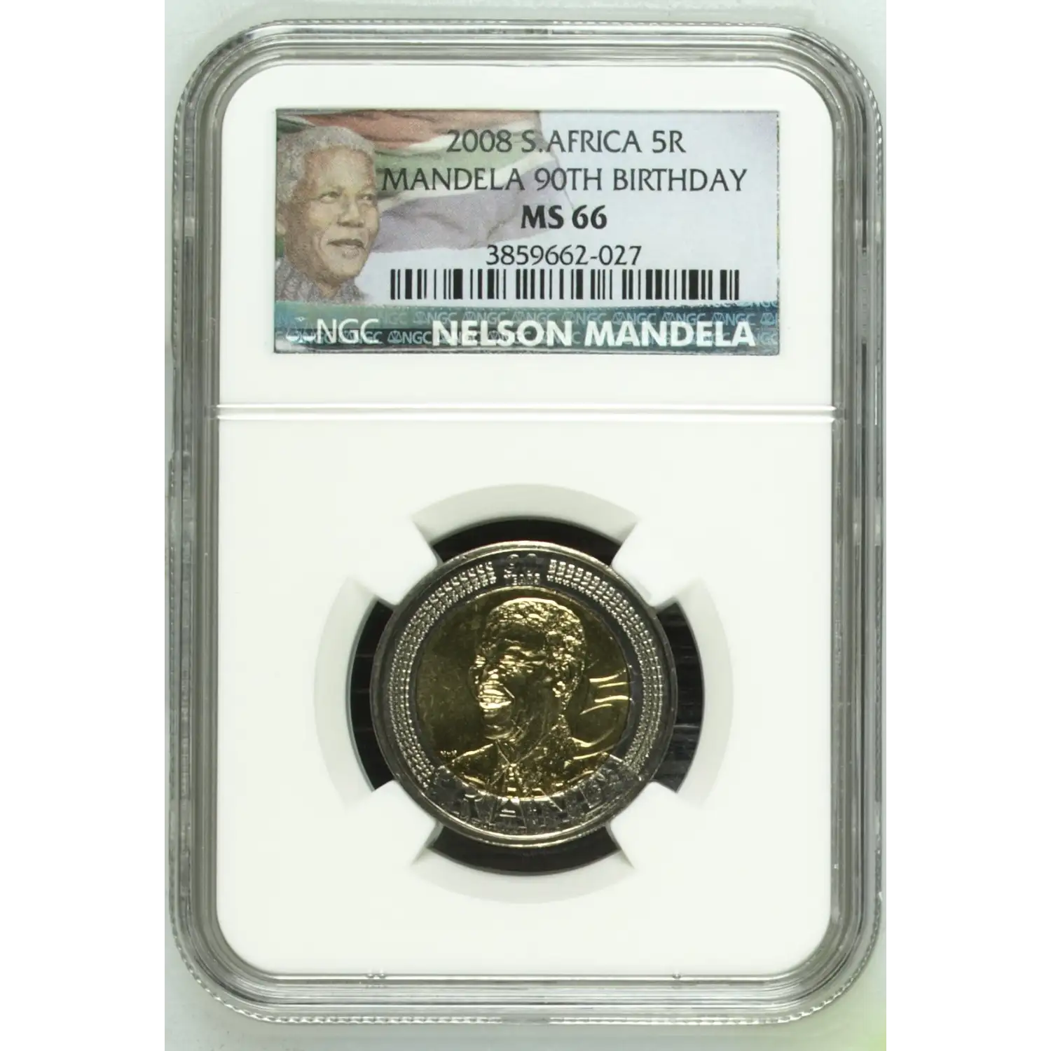 2008 South Africa Bi-Metallic 5 RAND NGC MS-66 MANDELA 90TH BIRTHDAY