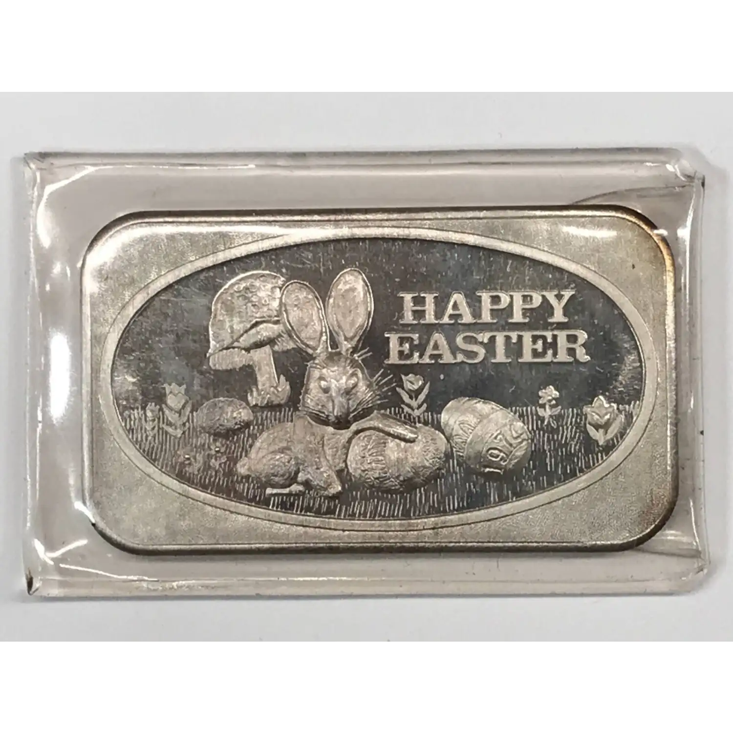 1974 Happy Easter Bunny & Eggs 1 oz Silver Art Bar - United States Silver Corporation (USSC)