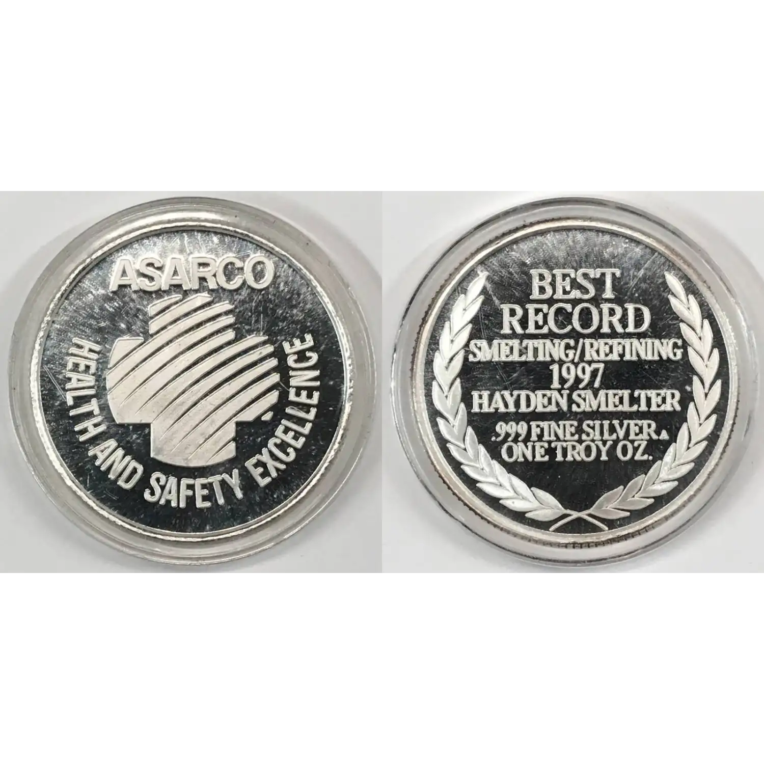 1997 ASARCO Health & Safety Excellence Best Record Smelting/Refining Hayden Smelter 1 oz Proof Silver Round in Capsule - nice round, but capsule is scratched/scuffed
