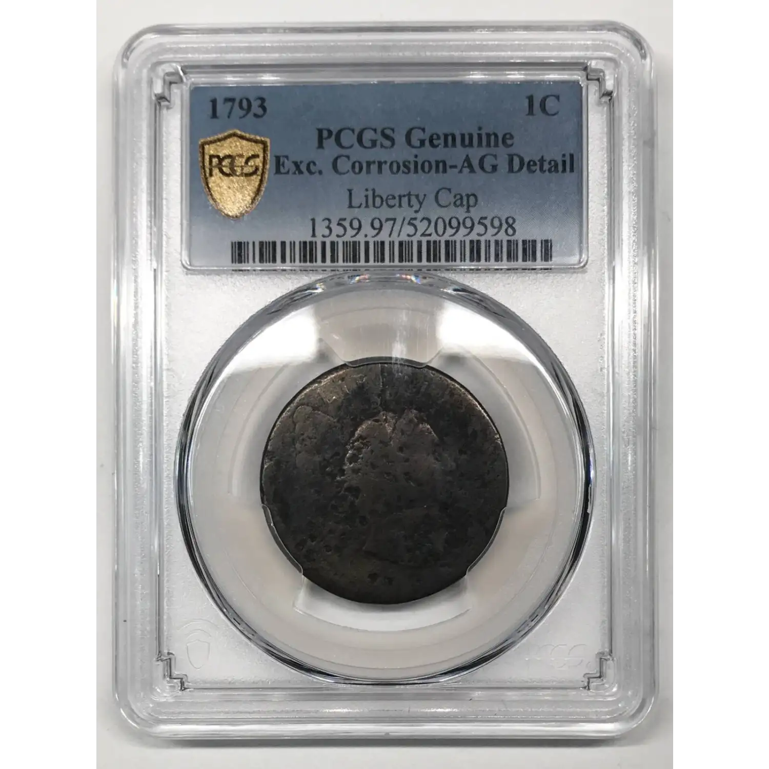 1793 Flowing Hair Liberty Cap Large Cent PCGS Genuine - AG Details (97 - Environmental Damage) BN