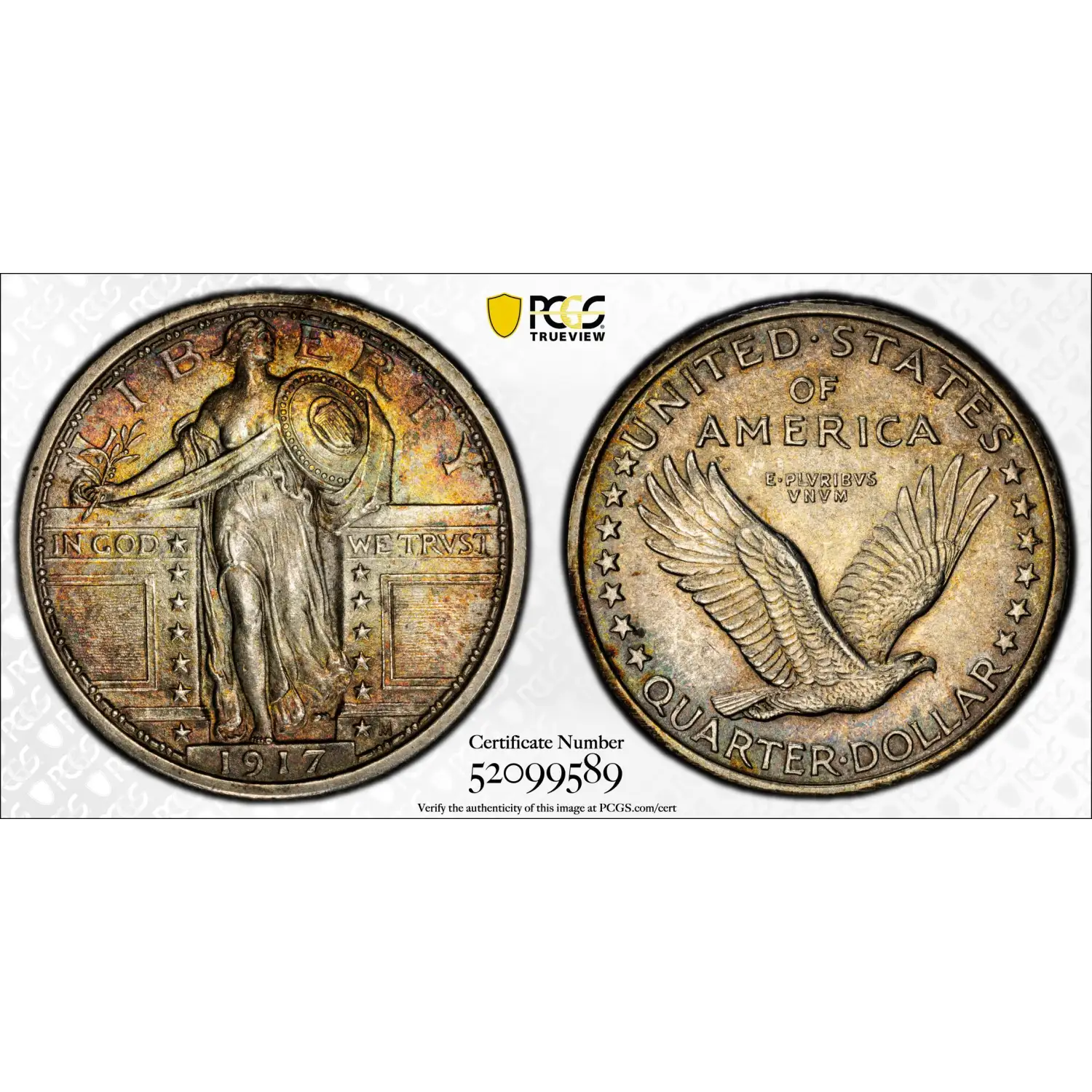 1917 P Type 1 Standing Liberty Quarter PCGS MS-64 FH *Rainbow Toning*