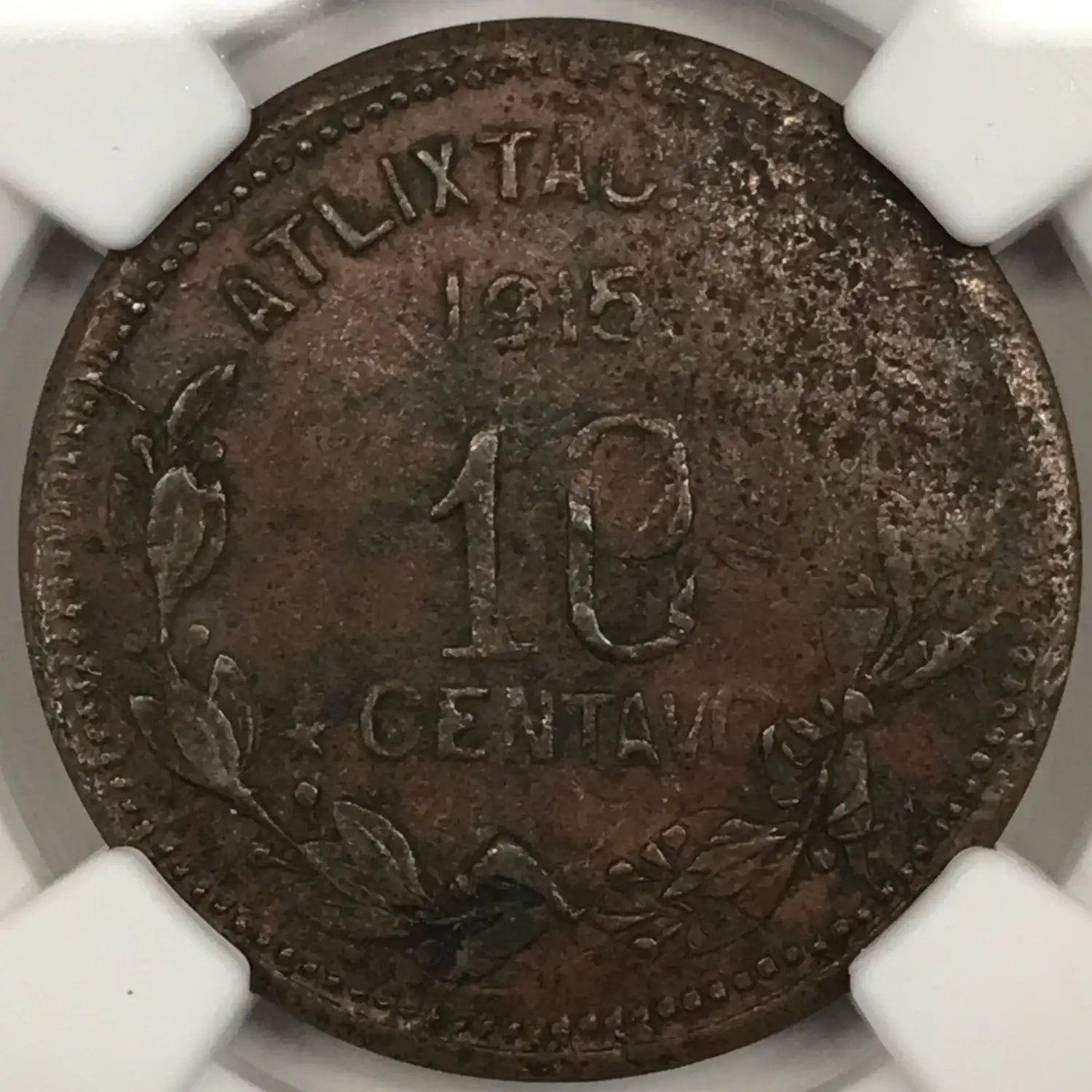 1915 Atlixtac, Guerrero (GRO) Mexico Revolutionary Copper 10 Centavos - Provisional Government Money - KM#645