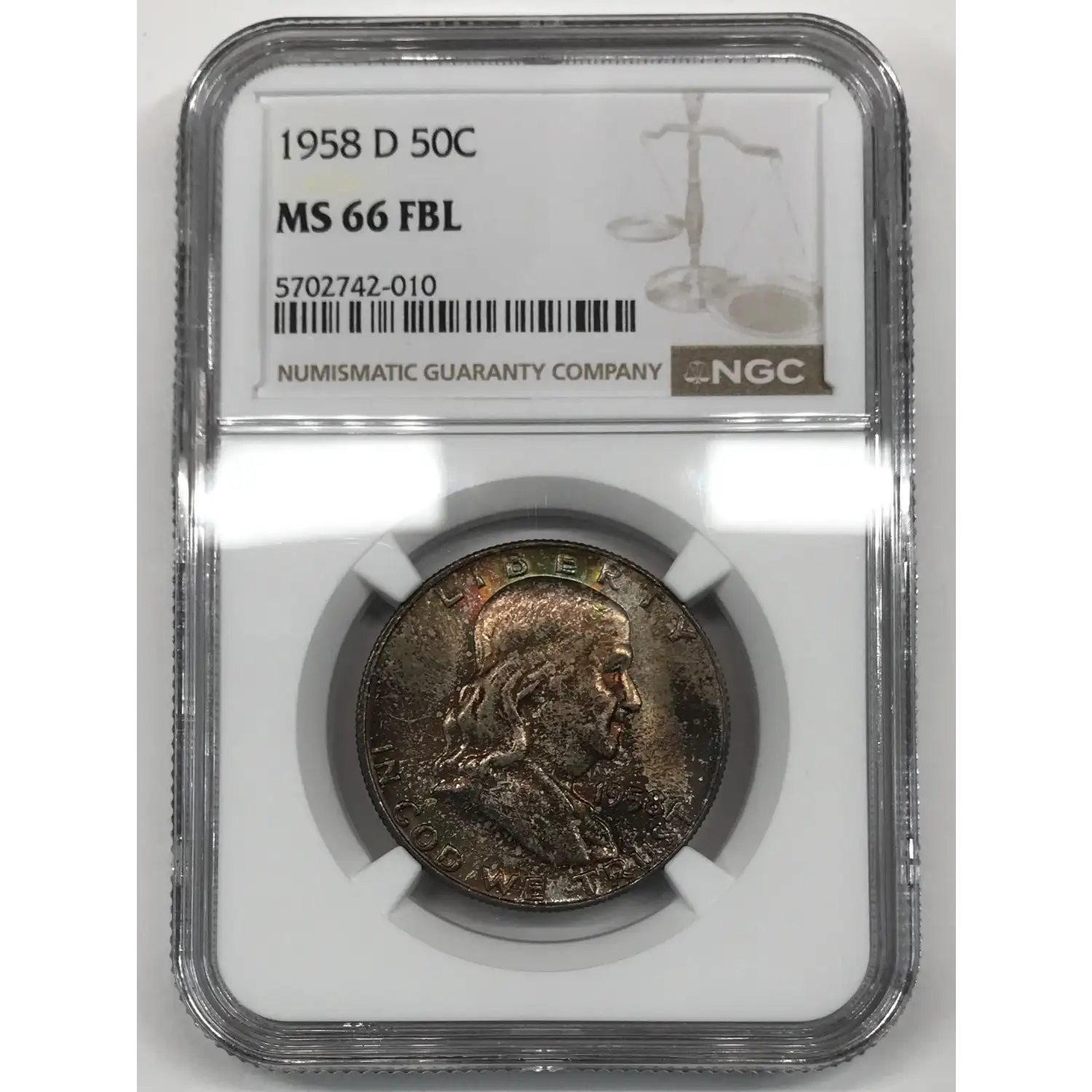 1958-D Franklin Half Dollar NGC MS-66 FBL *Rainbow Toning*