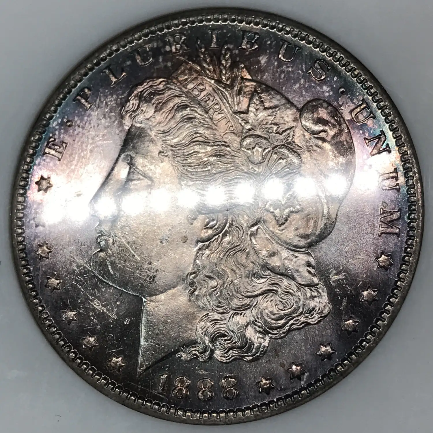 1888 O Morgan Silver Dollar NGC MS-62 PL - *Rainbow Toning* (esp. Reverse) - Old Fatty Holder