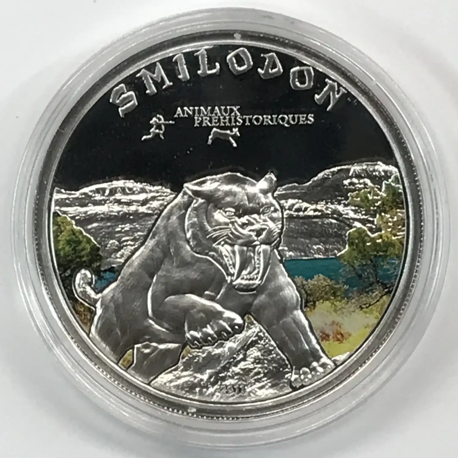 2011 Smilodon Sabre Tooth Tiger Colorized Ivory Coast 1000 Francs Proof Silver Coin - KM#9 - 25g, .925 fine - 0.743 troy oz ASW