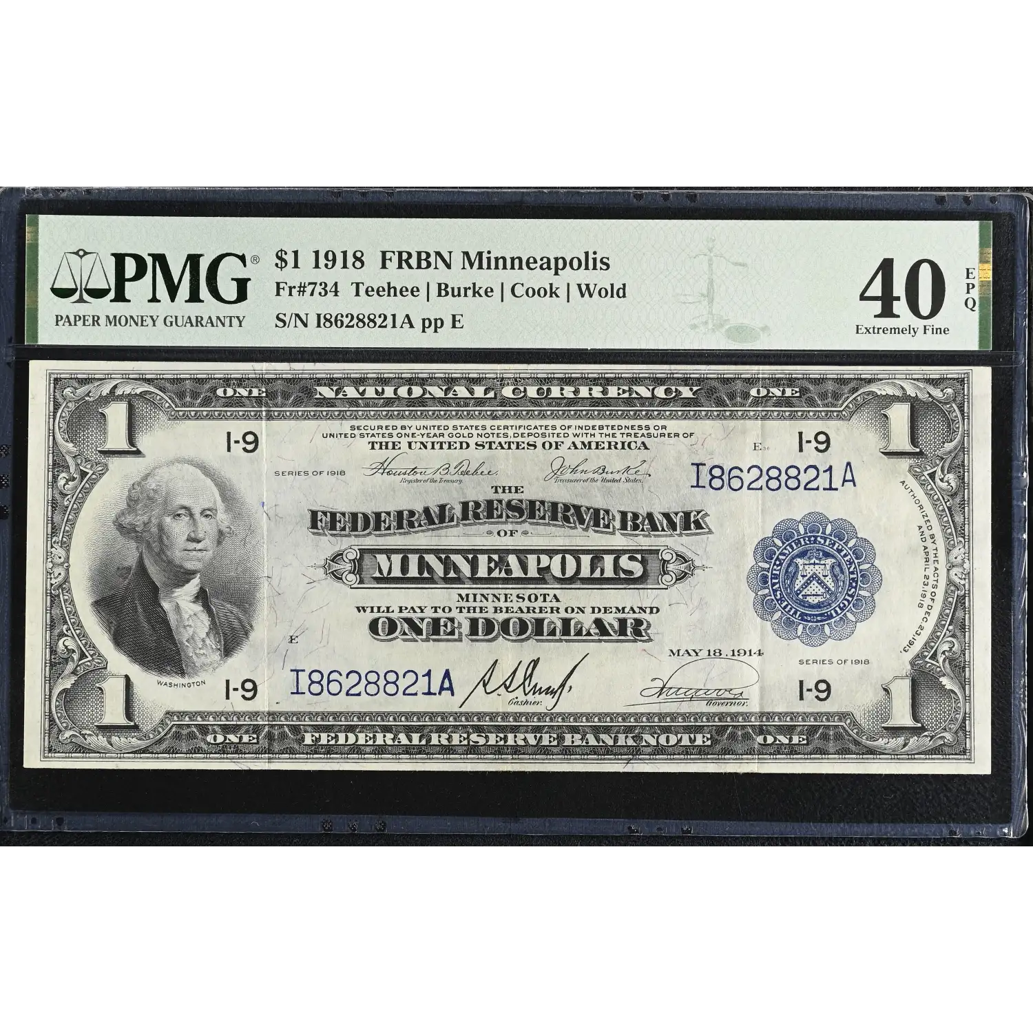 1918 $1 Federal Reserve Bank Note Minneapolis Fr#734 - 40 Extremely Fine EPQ