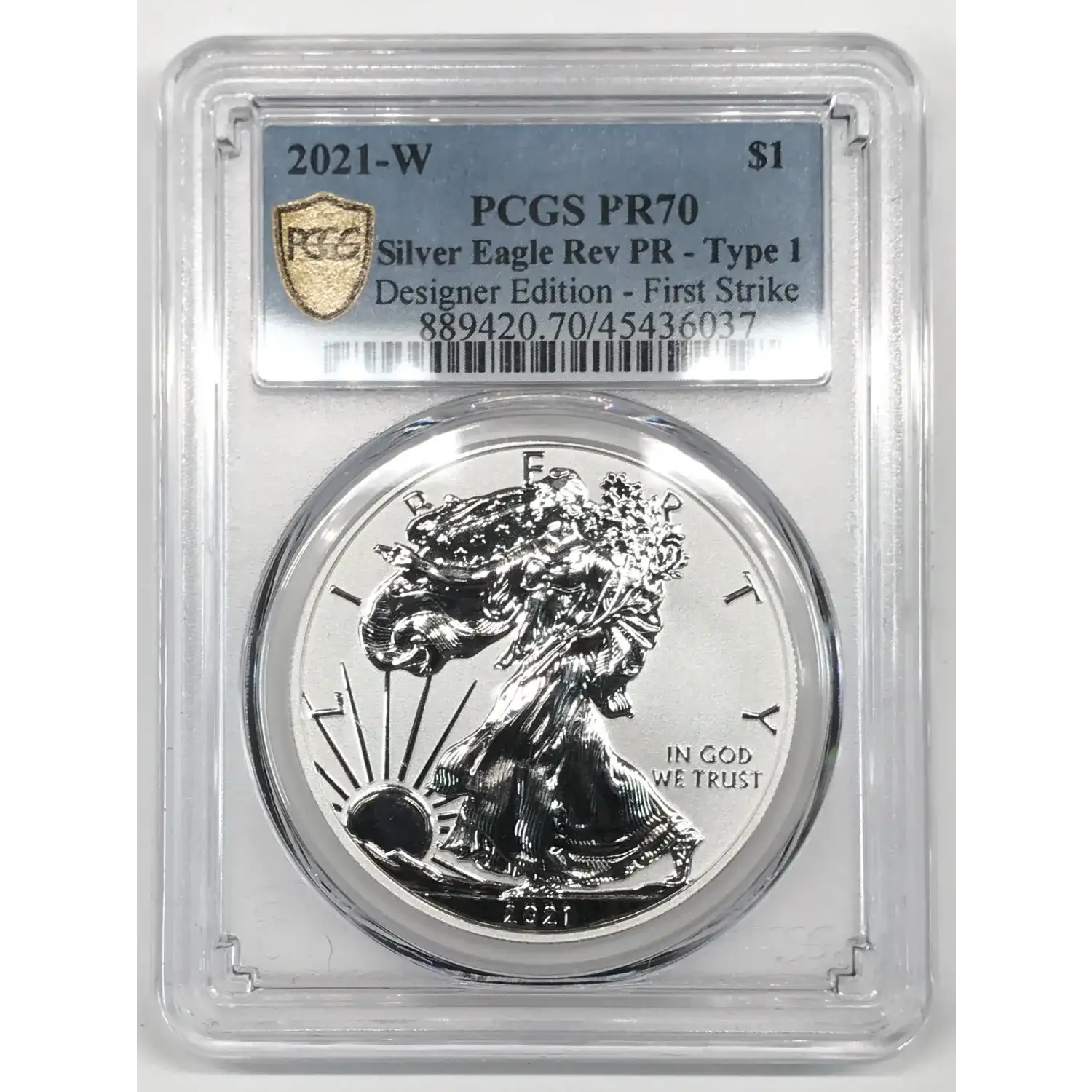 2021-W Silver Eagle PCGS PR-70 Rev PR Type 1 Designer Edition First Strike