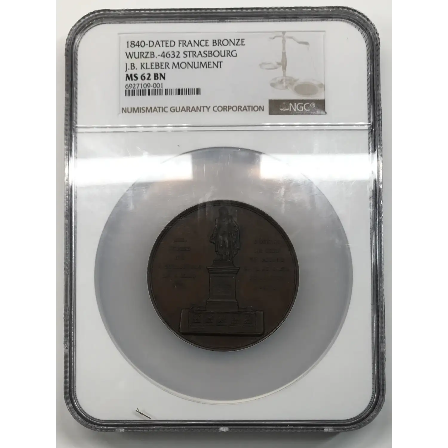 1840 Dated France Bronze Medal NGC MS-62 BN - WURZB-4632 STRASBOURG J.B. KLEBER MONUMENT